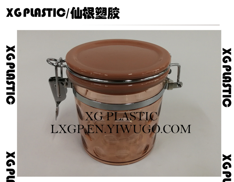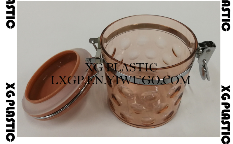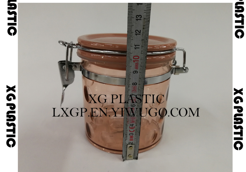 塑料食品储物罐550ML透明彩色圆点密封罐卡扣时尚佐料瓶收纳罐
