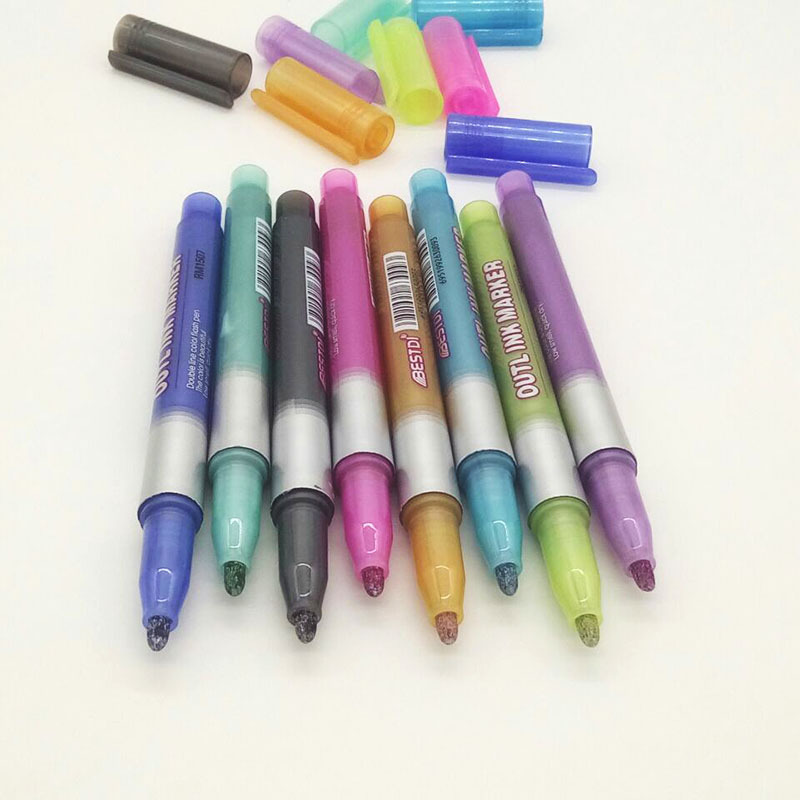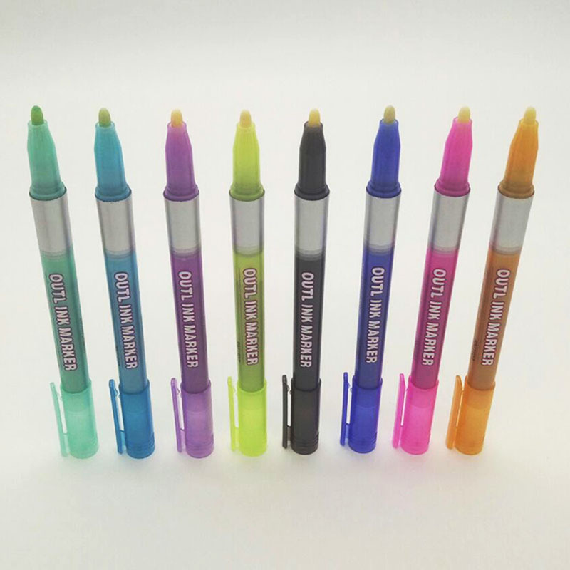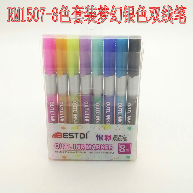 新款 标点RM1507 8色套装梦幻银彩双线笔 双色贺卡涂鸦签字记号笔