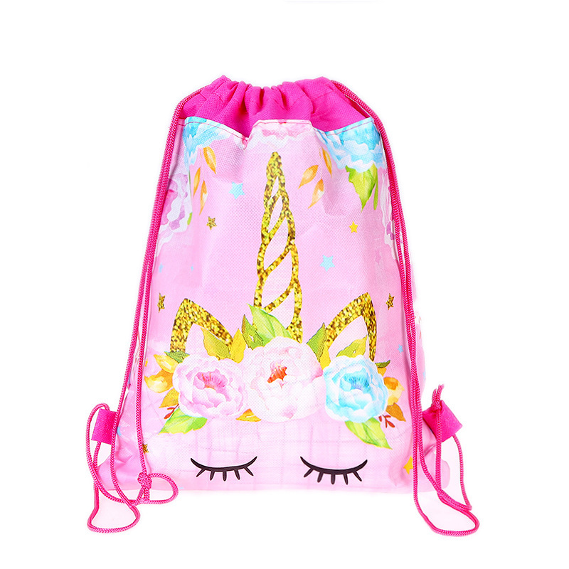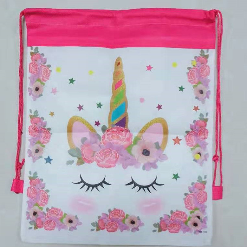 亚马逊花朵独角兽卡通无纺布束口袋抽绳包儿童礼物游泳包赠品袋