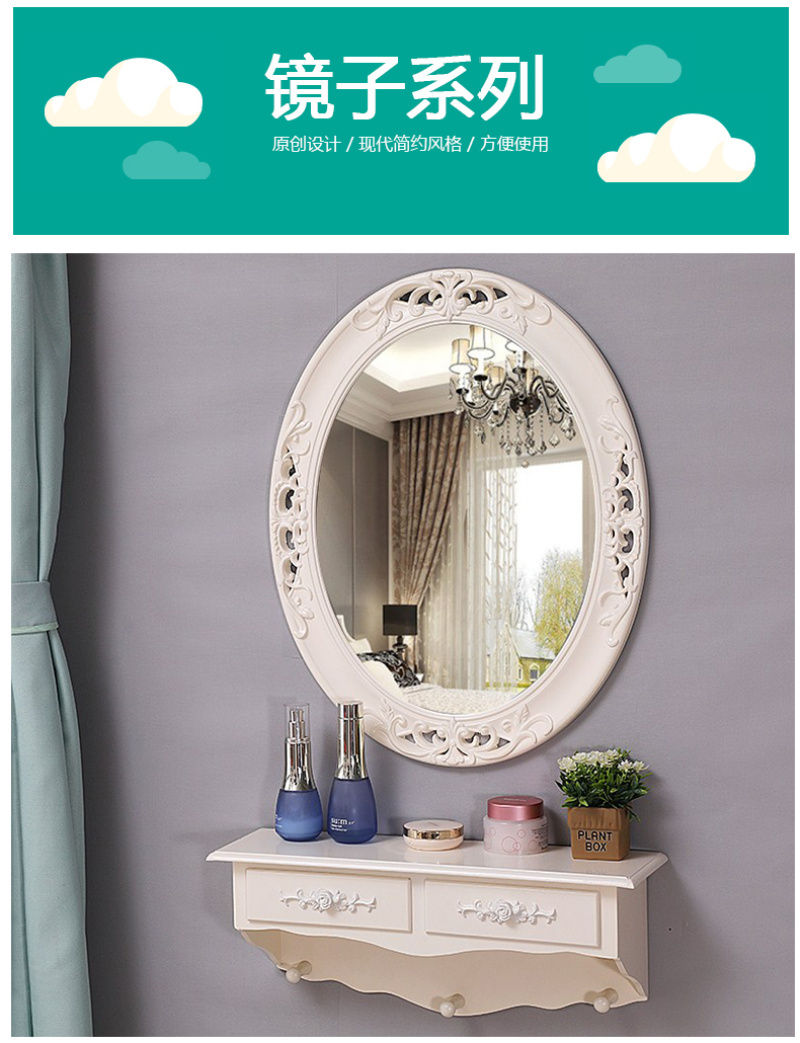 北欧壁挂梳妆台镜卧现代简约新中式A274 椭圆梳妆台套装