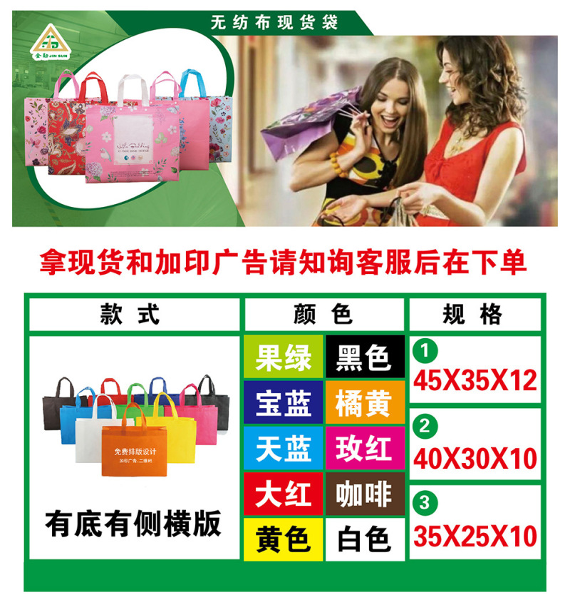 厂家批发竖款手提折叠无纺布购物袋 商场礼品购物袋通用 现货批发