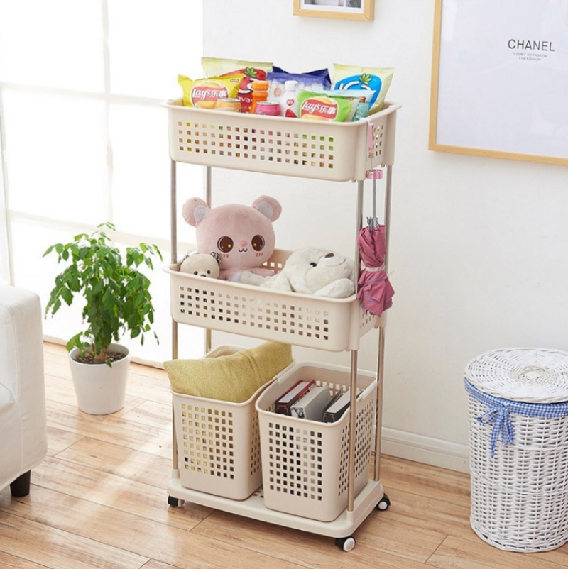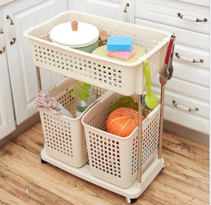 新款浴室手提式收纳筐 滑轮可移动置物篮 组合式多层塑料脏衣篮框