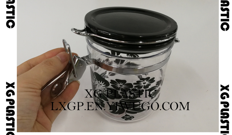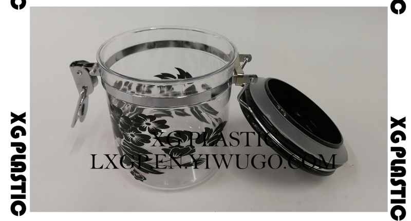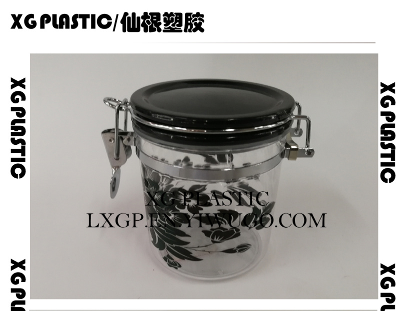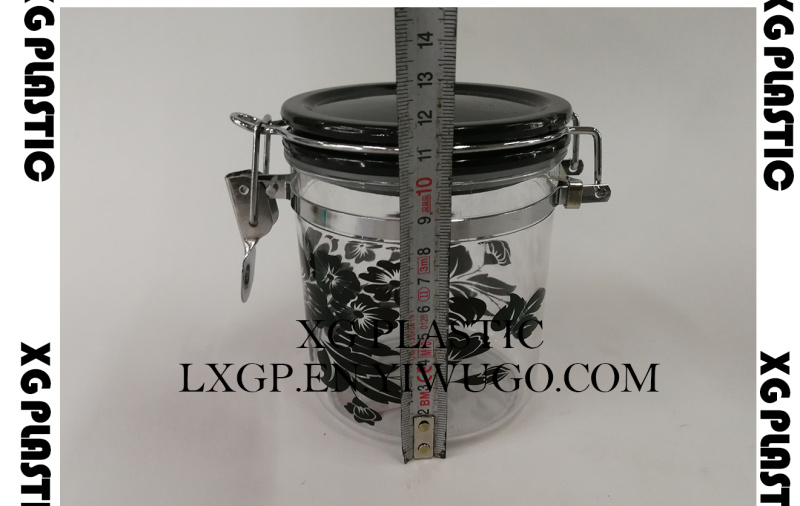 密封罐550ML时尚储物罐茶叶罐杂粮防潮保鲜罐圆形透明印花易扣罐