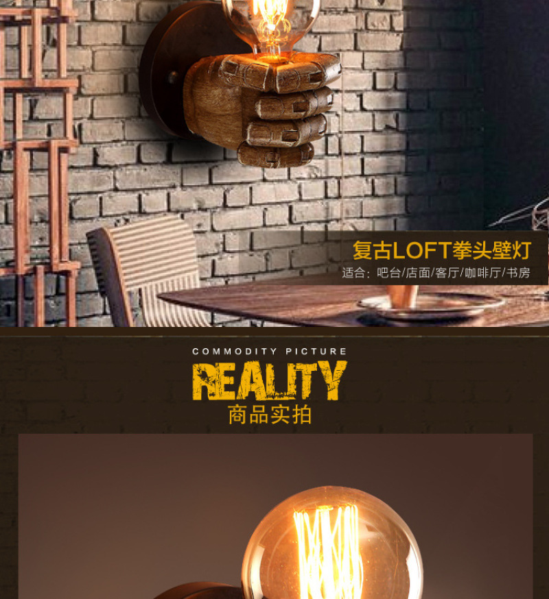 外贸专供拳头树脂壁灯 Loft工业风寿司店 酒吧厅仿古壁灯