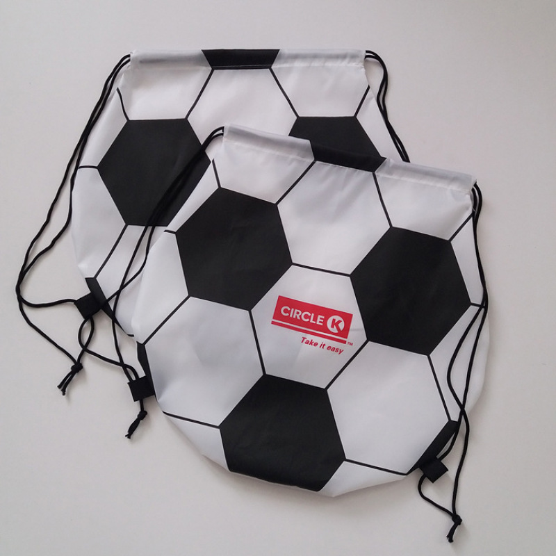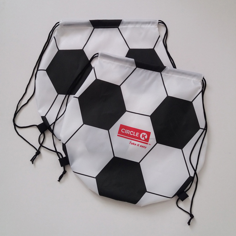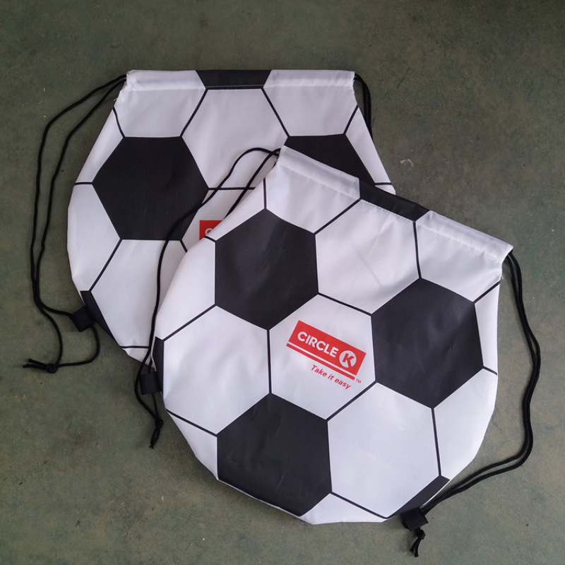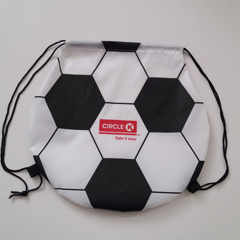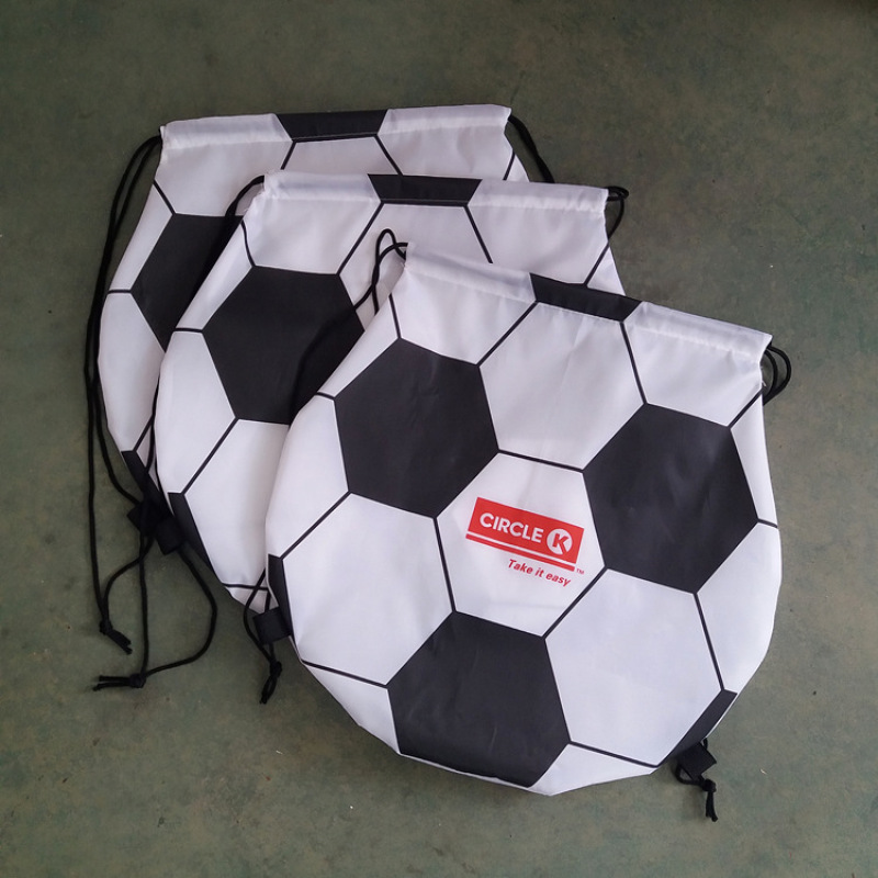 定做涤纶210D足球束口袋 圆形足球抽绳背袋 球形双边拉伸束口袋