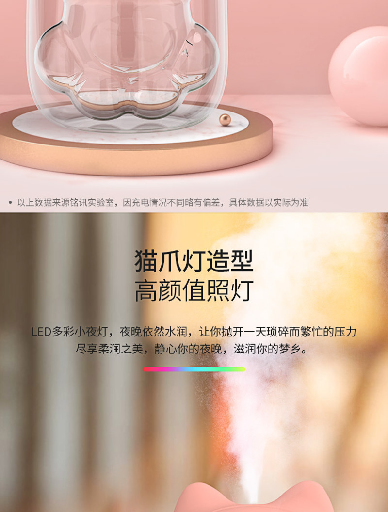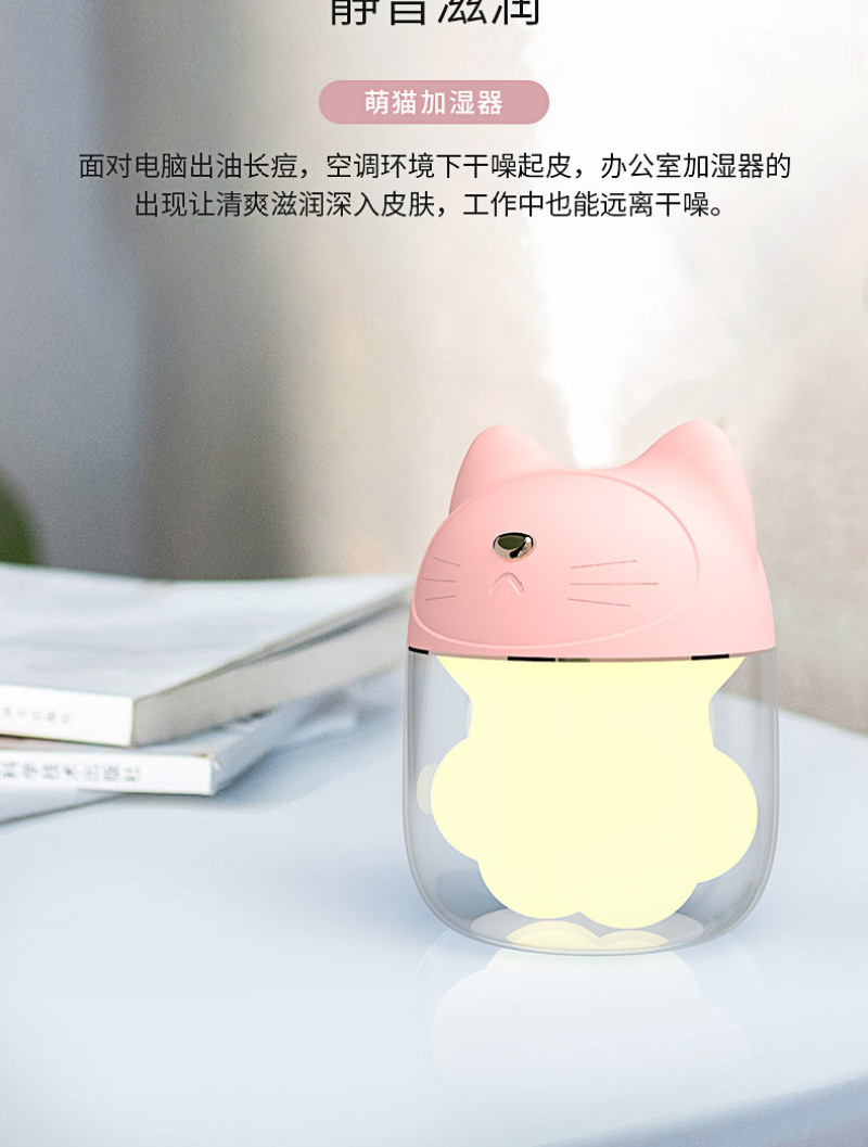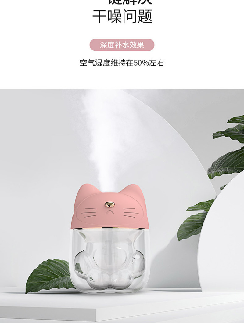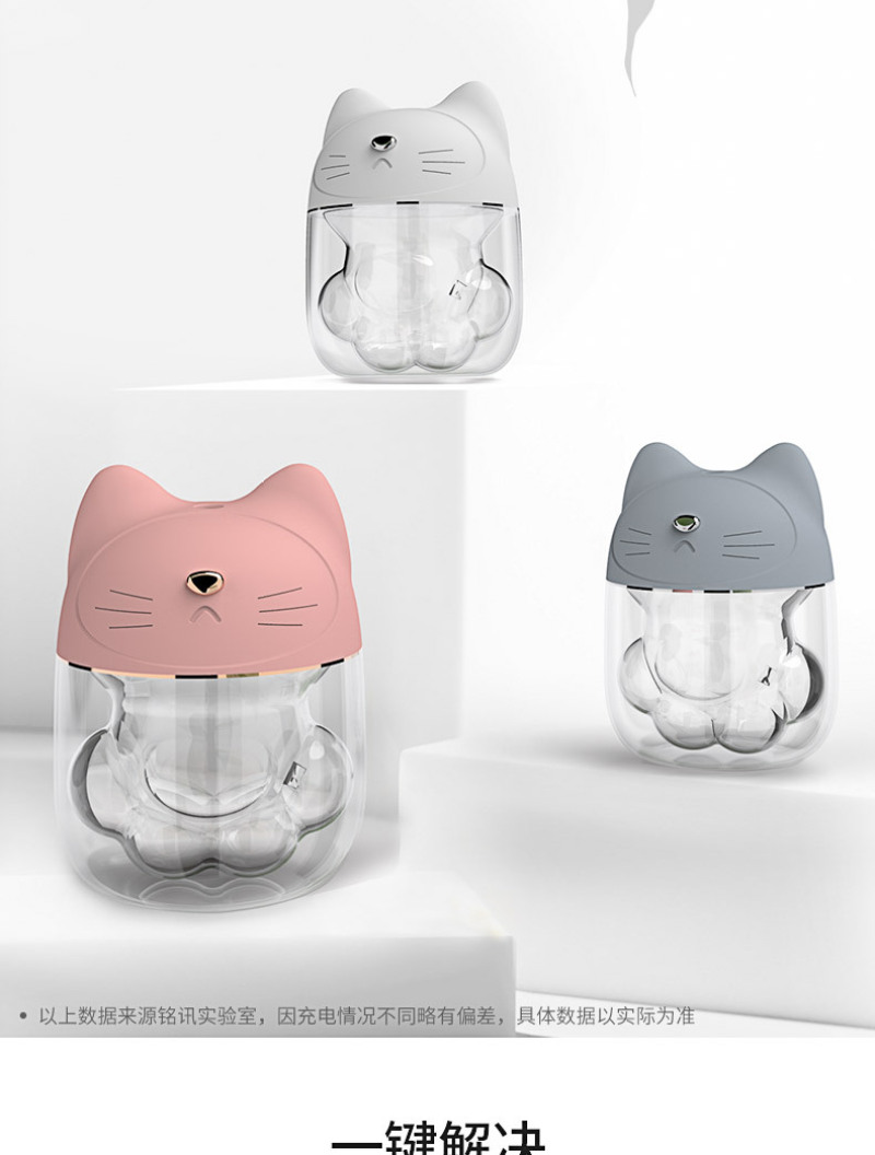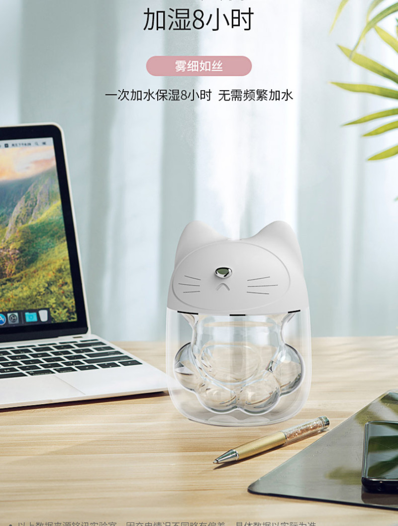 可爱猫爪USB加湿器带小夜灯卡通迷你办公桌面寝室萌猫杯子加湿器