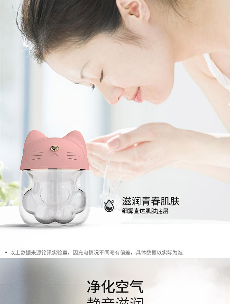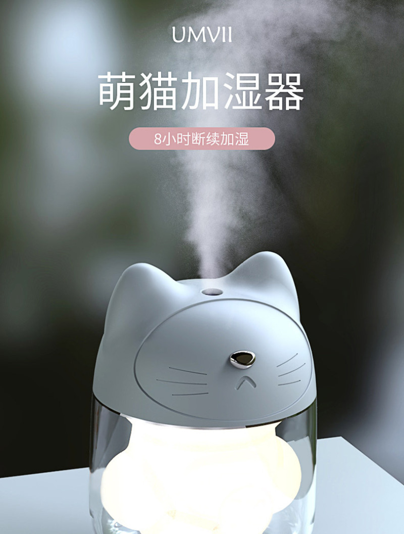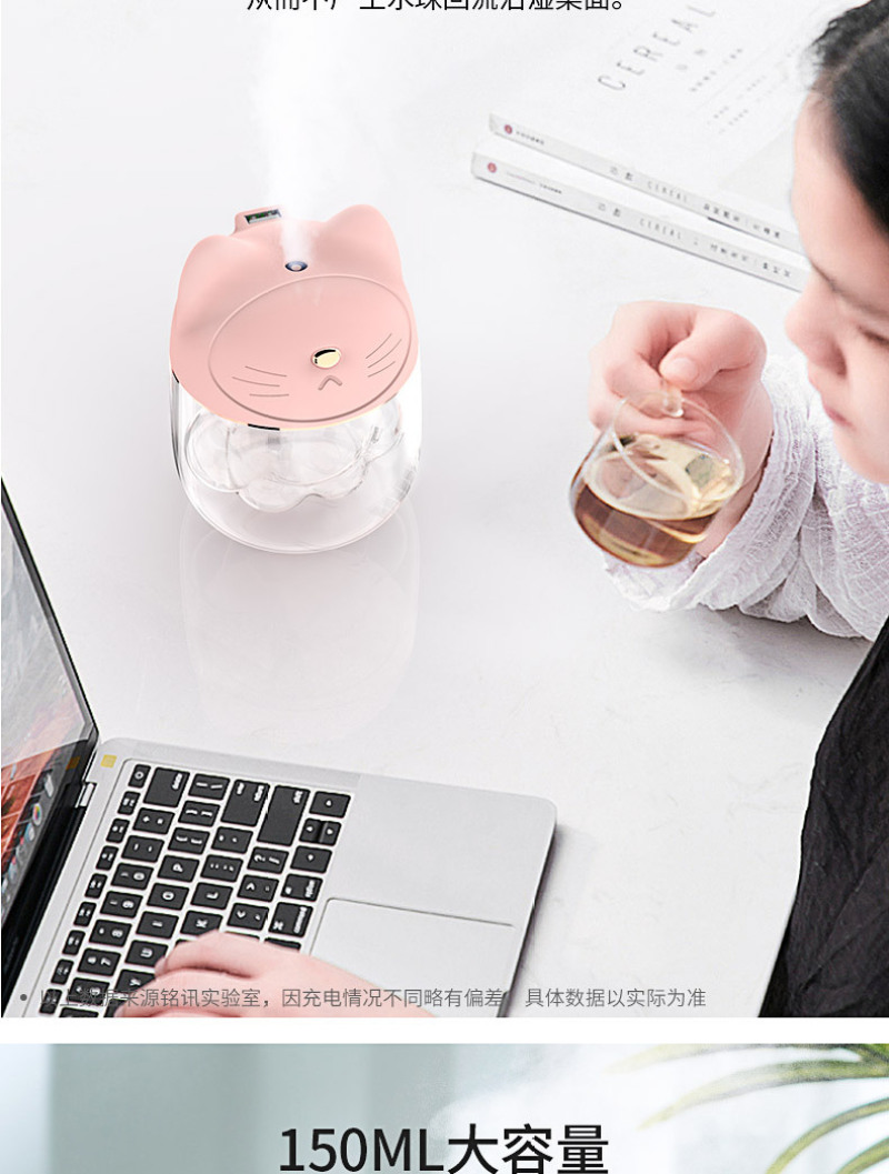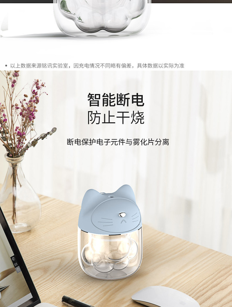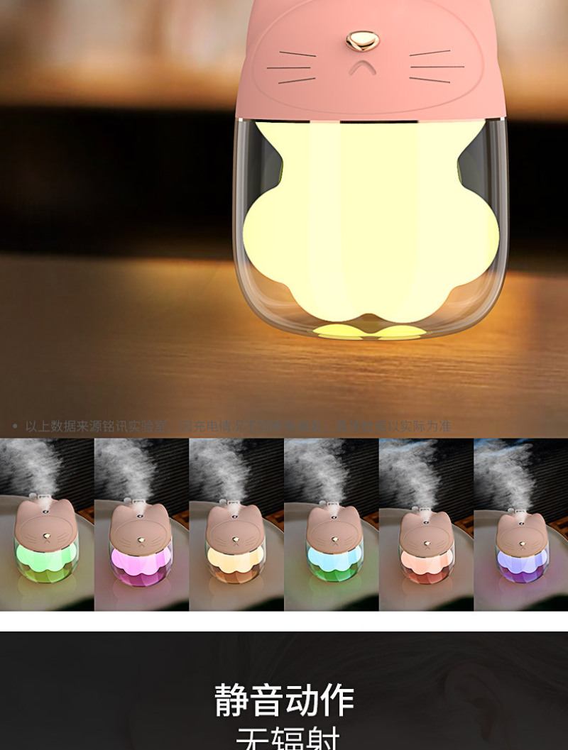 可爱猫爪USB加湿器带小夜灯卡通迷你办公桌面寝室萌猫杯子加湿器
