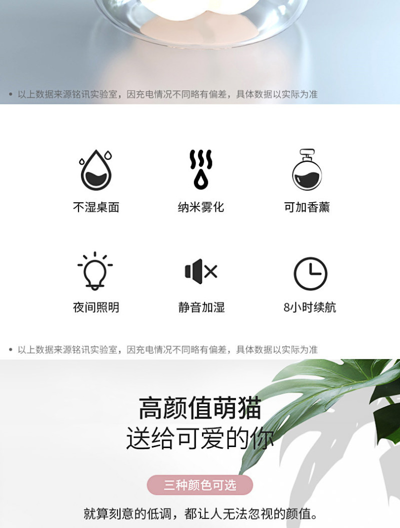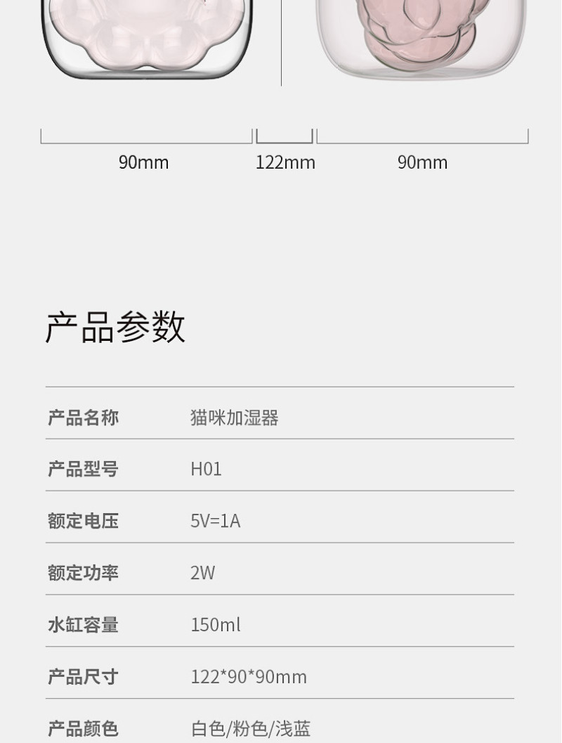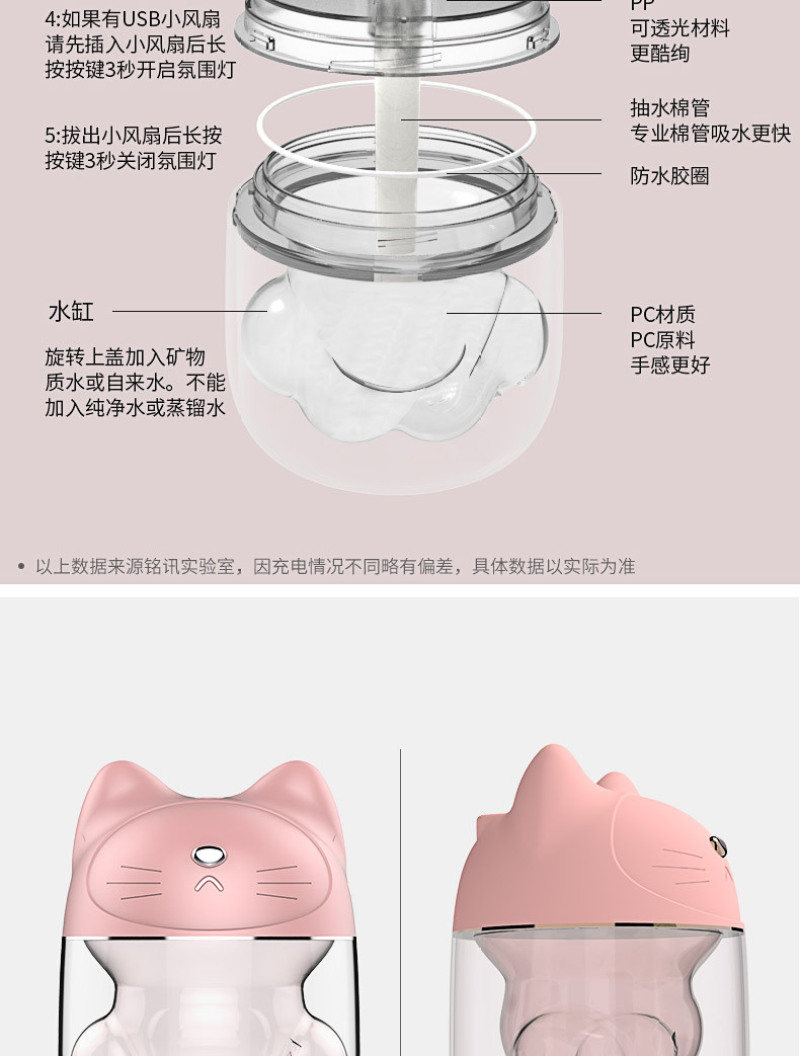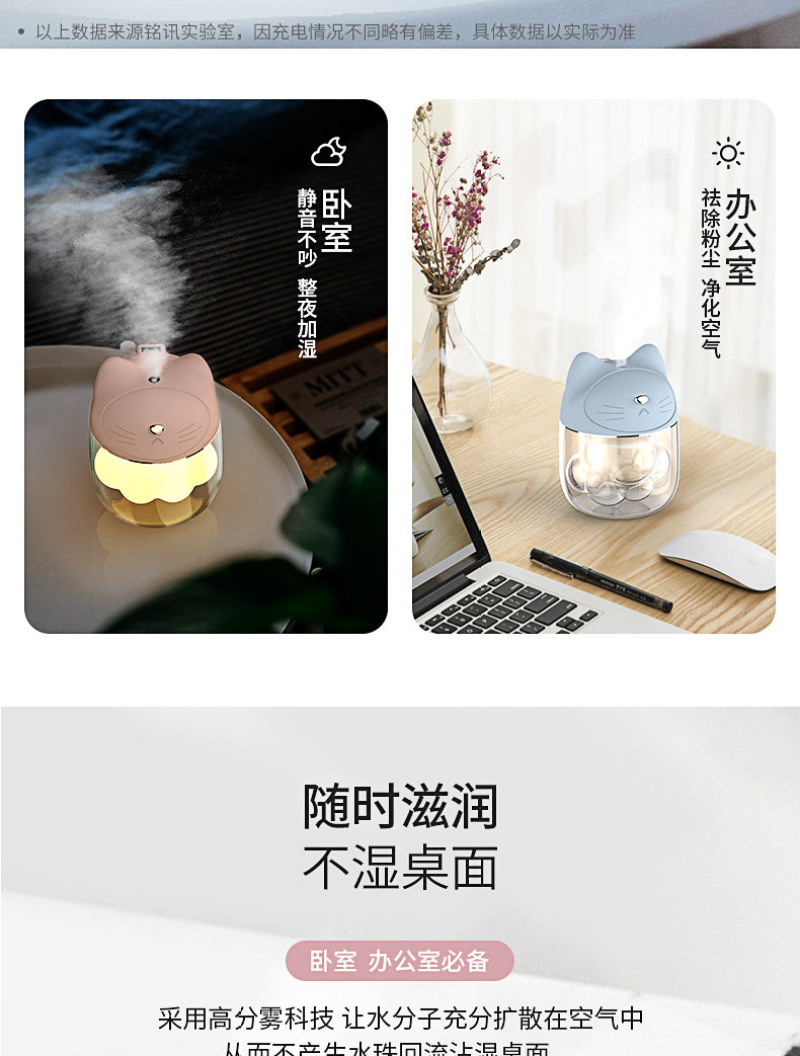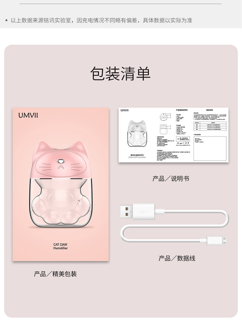 可爱猫爪USB加湿器带小夜灯卡通迷你办公桌面寝室萌猫杯子加湿器