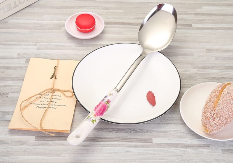 陶瓷柄烤花厨具套装无磁不锈钢出具经七件套