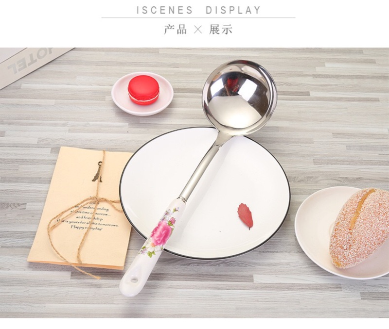 陶瓷柄烤花厨具套装无磁不锈钢出具经七件套