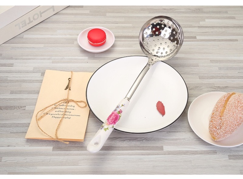 陶瓷柄烤花厨具套装无磁不锈钢出具经七件套
