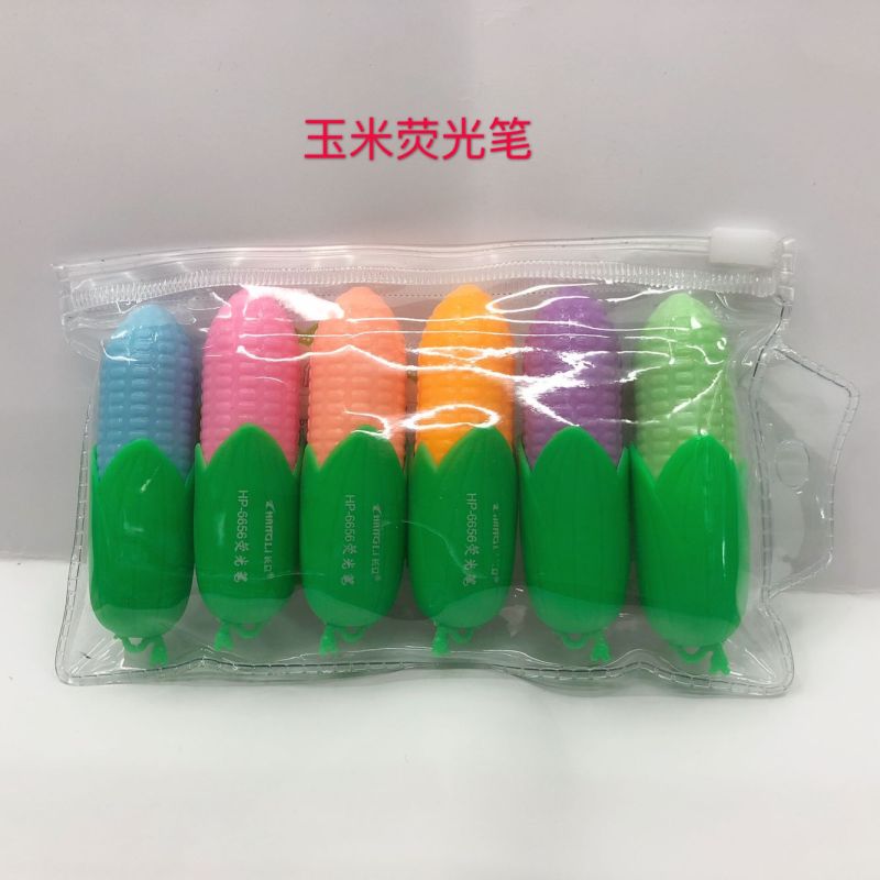 玉米造型小荧光笔 糖果色荧光笔 迷你荧光笔6色彩色记号笔