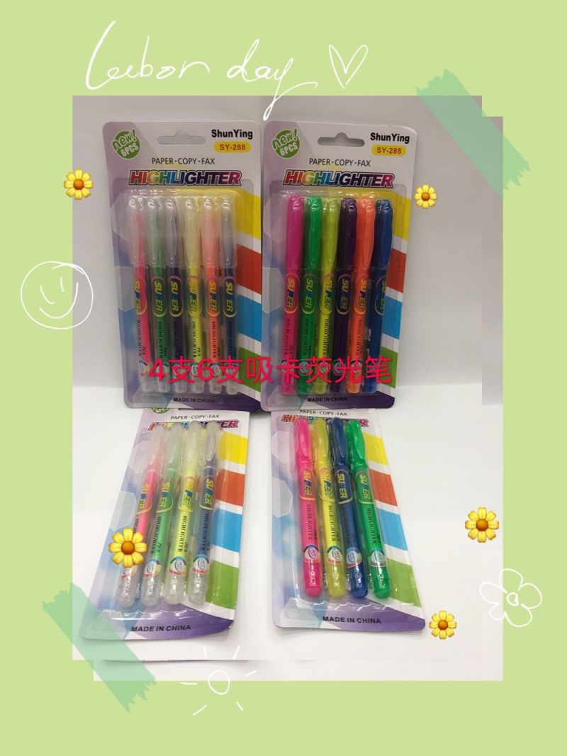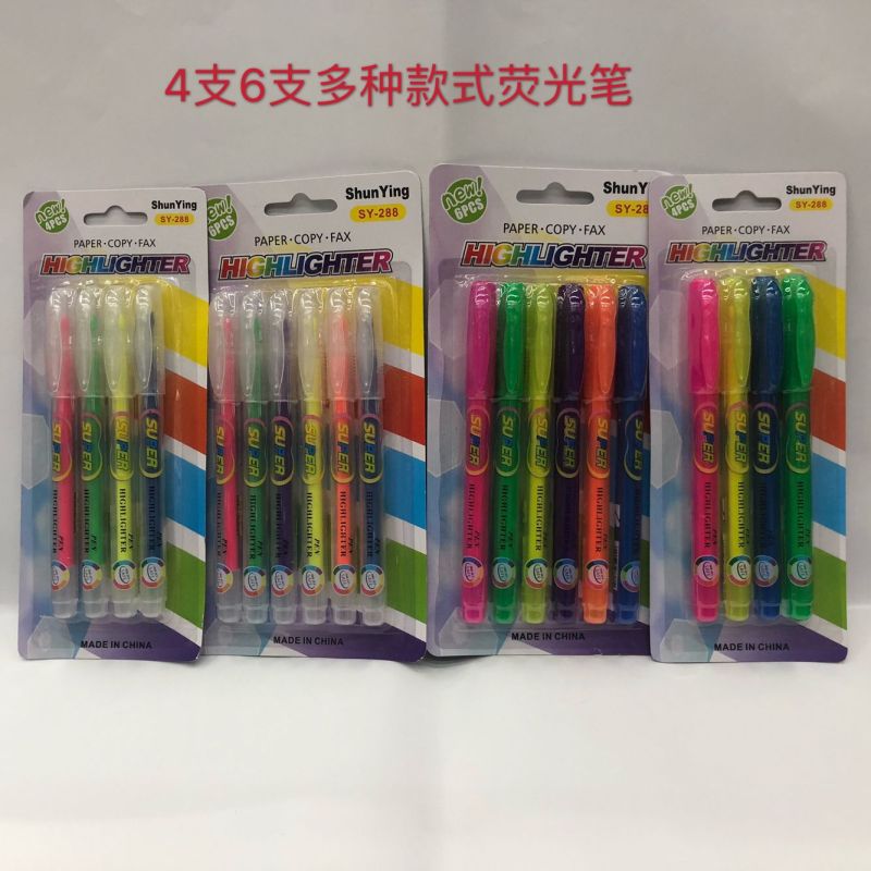 荧光笔 4支6支吸卡套装 标记笔 醒目笔厂家直销SY-288