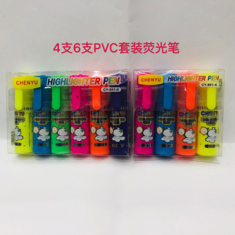 荧光笔 4支6支PVC透明盒和展示盒多种包装 标记笔 醒目笔