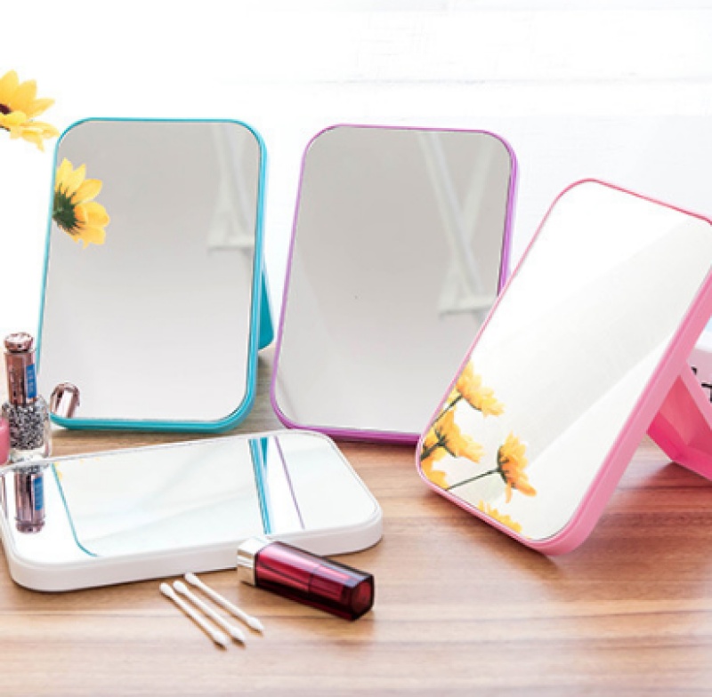 简约长方形桌面镜高清化妆镜子台式梳妆镜子折叠便携化妆镜T