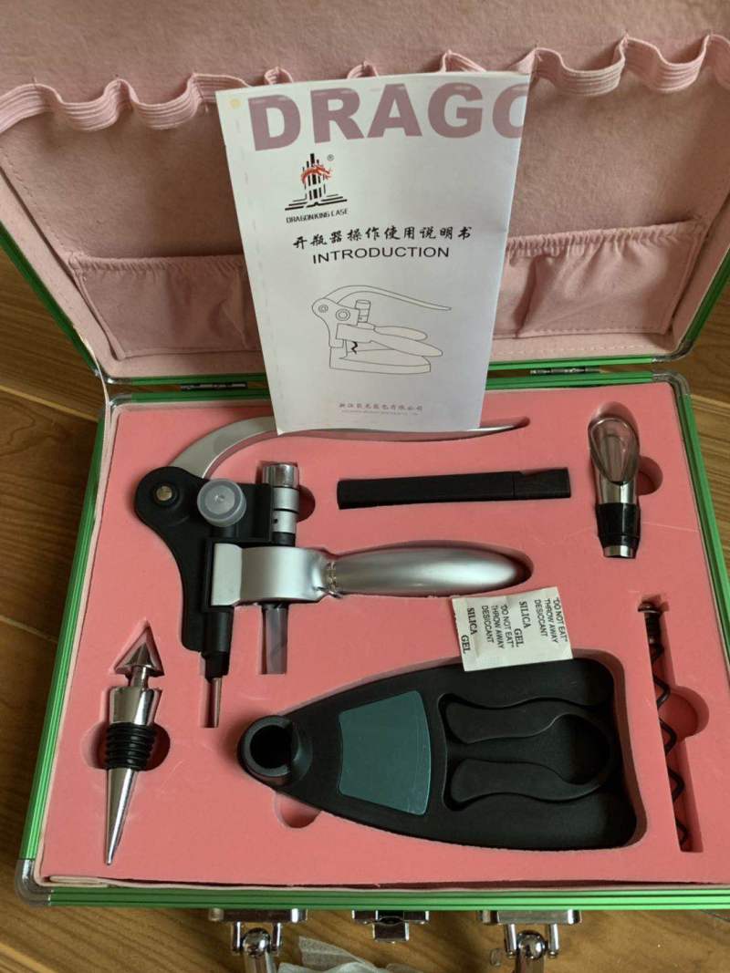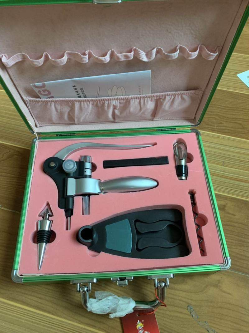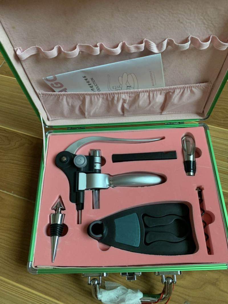 兔型酒具多功能开瓶器红酒开瓶器套装,内含有不锈钢兔头开瓶器,兔头开瓶器底座,原装倒酒器,替换钢针,割纸器,红酒塞,合计六件套,铝合金套装,大气上档次,携带方便,经久耐用,做工精细,标价388元/套,还有165套,需要联系18857917188