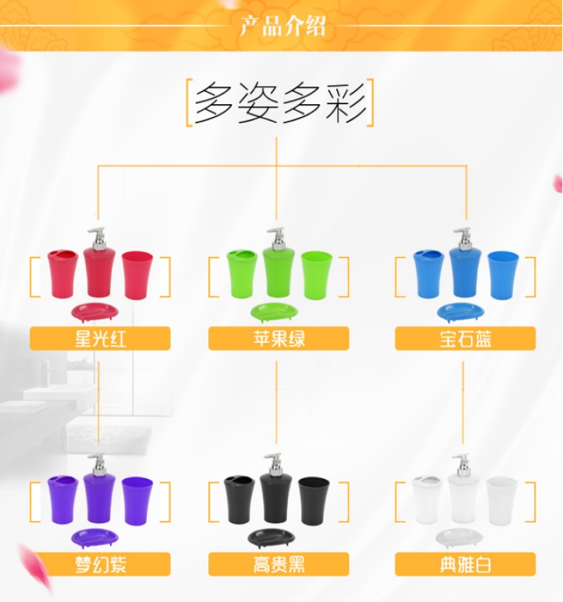新款精美时尚浴室套装 洗漱四件套 优质塑料四件套洗浴套装