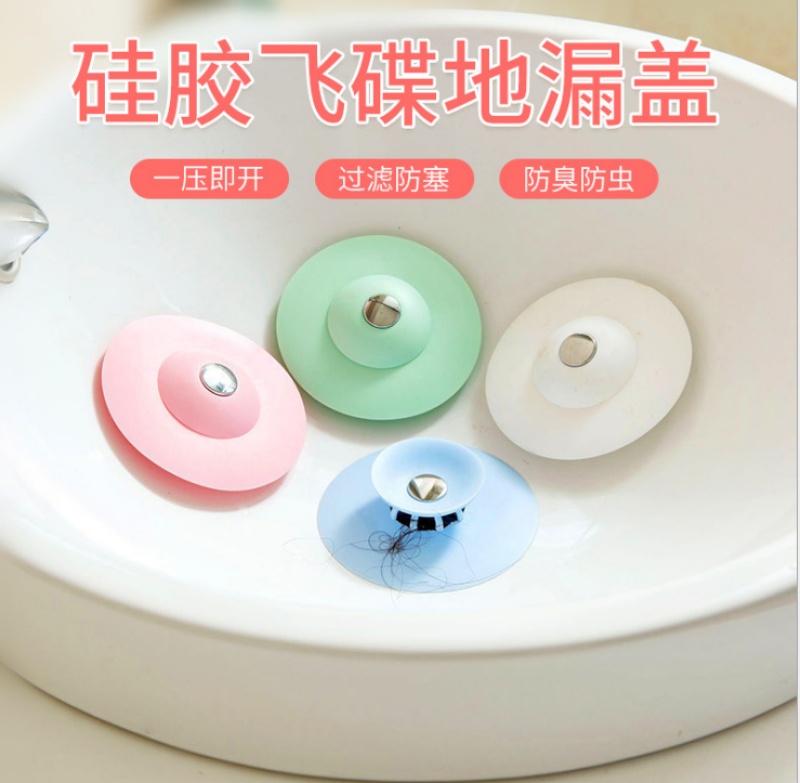 厨房卫生间水槽防臭器按压式地漏盖 洗手盆塞堵漏水 飞碟形状
