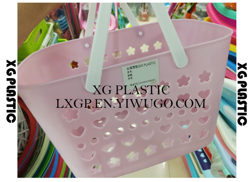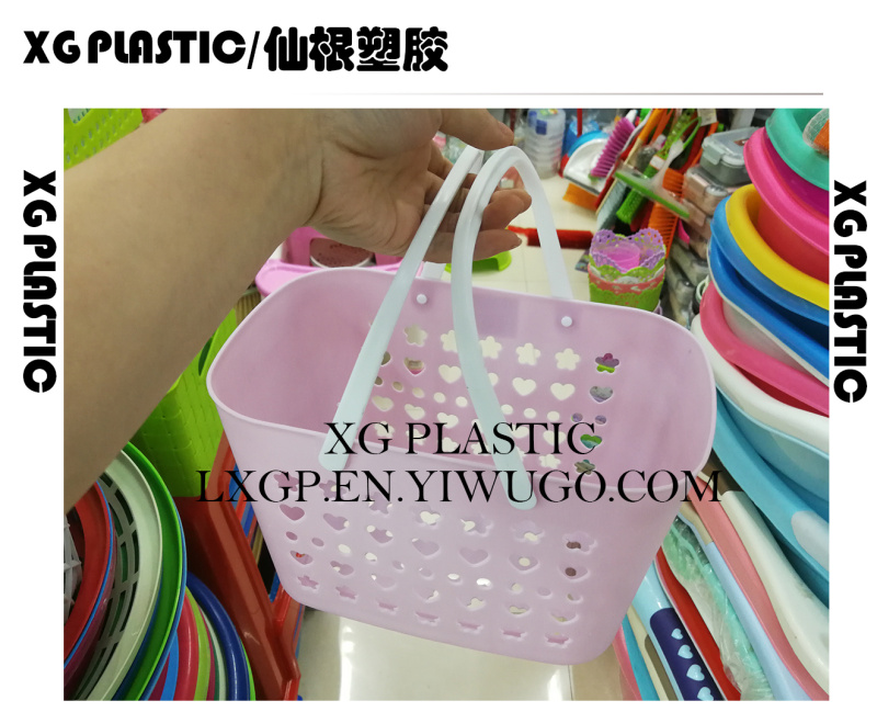 收纳篮长方塑料篮软篮买菜篮手提篮耐用圆点爱心花朵镂空置物篮