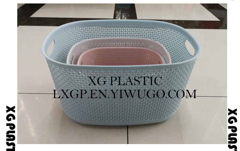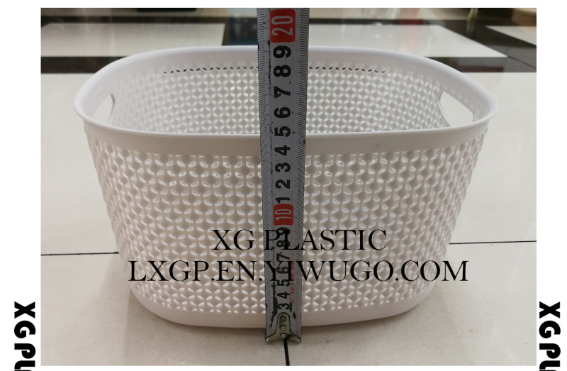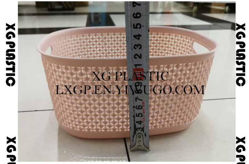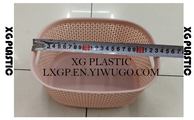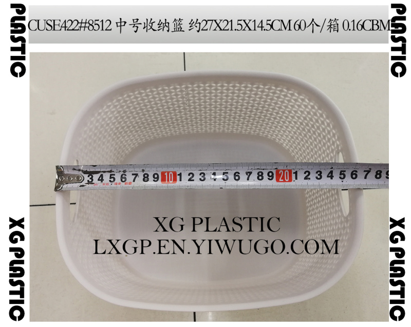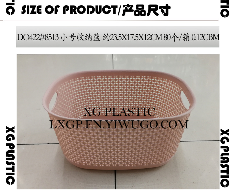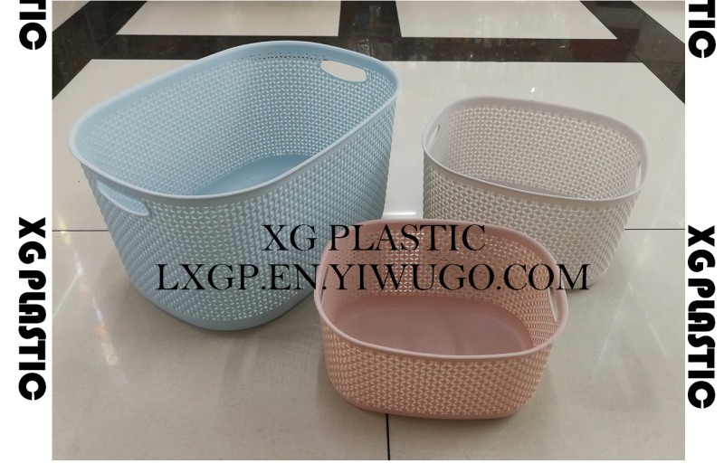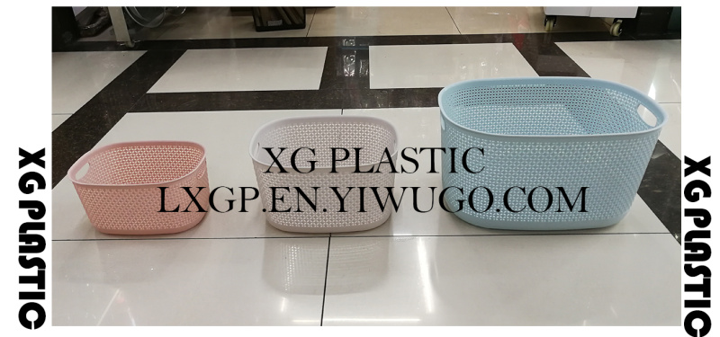 置物筐桌面收纳篮塑料篮仿藤编时尚长方杂物筐双耳收纳筐储物盒