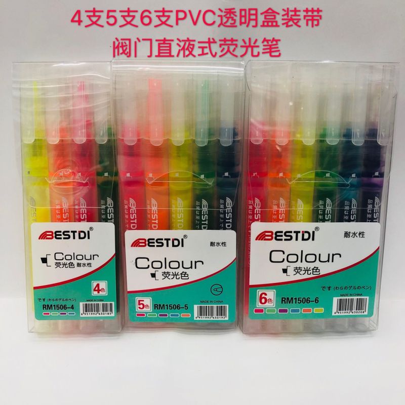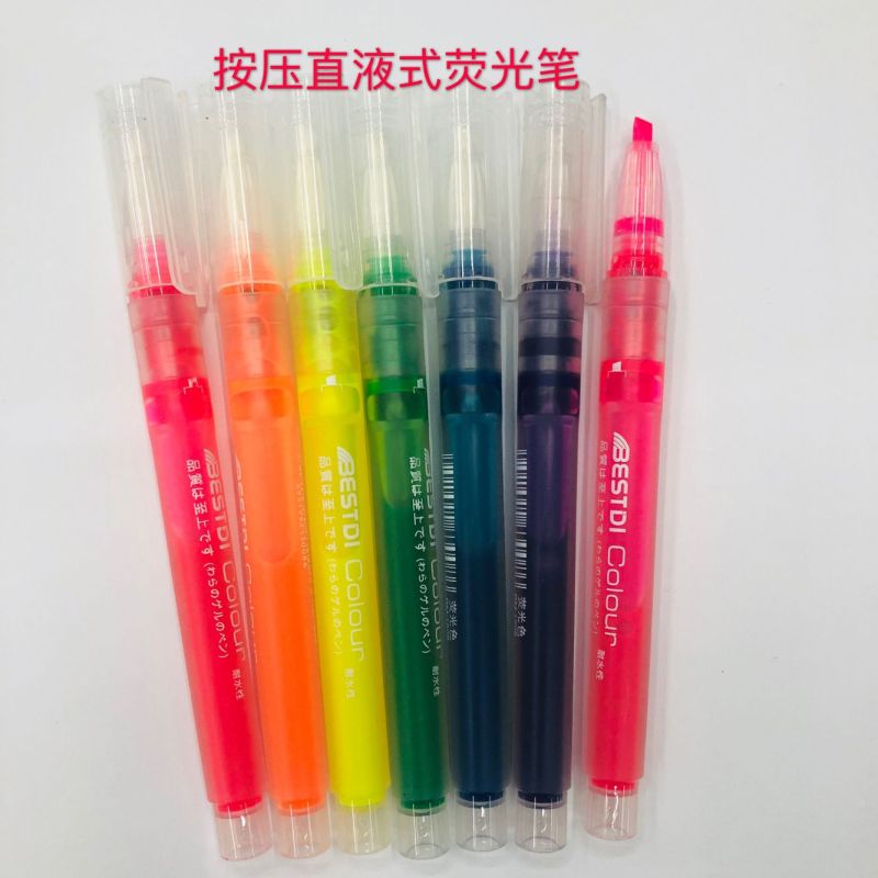 直液按压式荧光笔 荧光色 液体墨水荧光笔标点4支5支6支套装