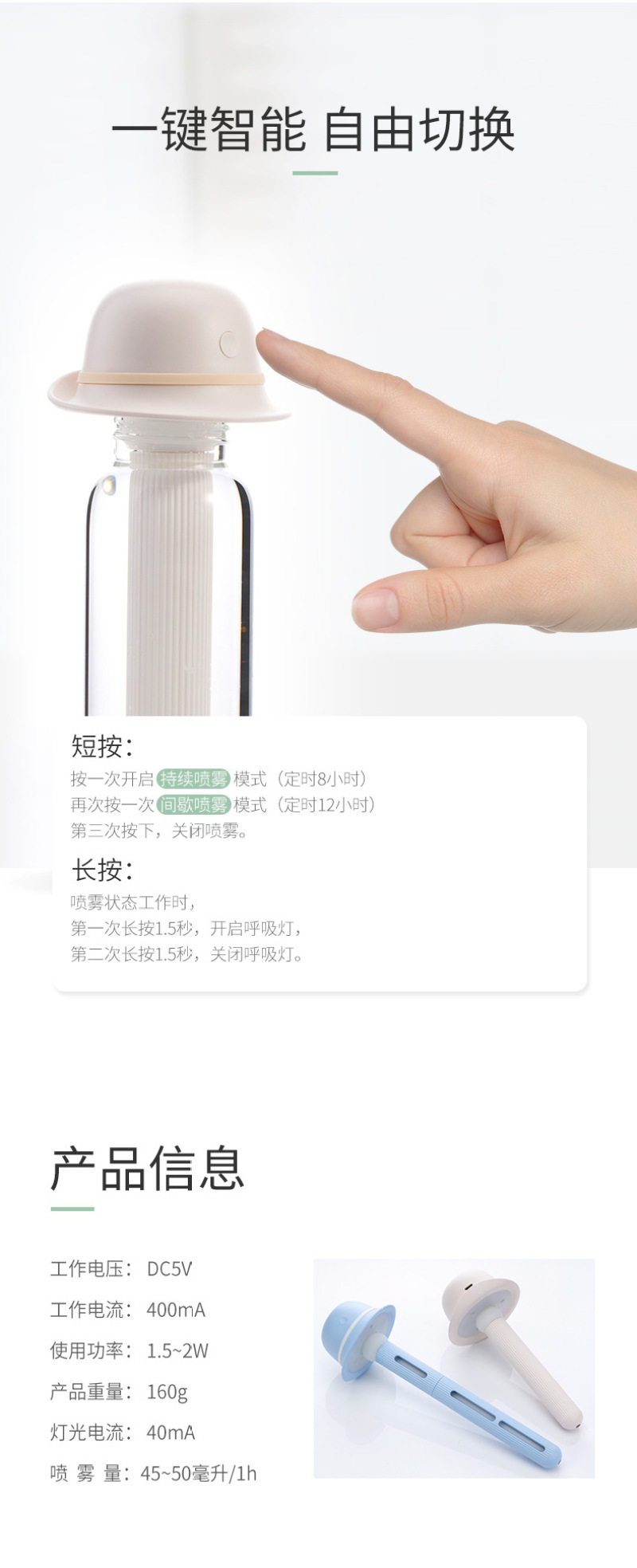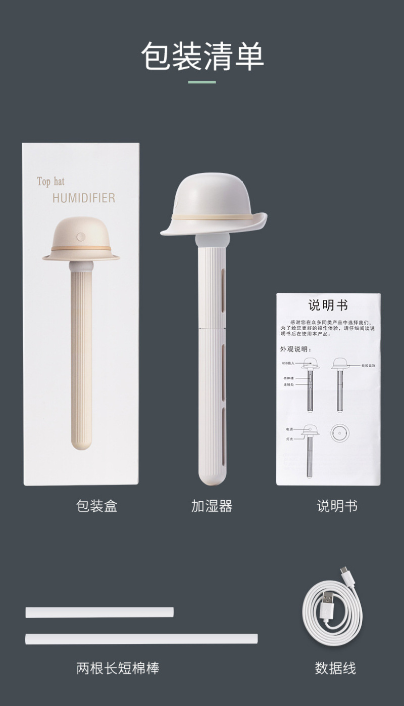 新款无水箱创意设计礼帽加湿器 usb充电夜灯雾化器迷你便携礼品