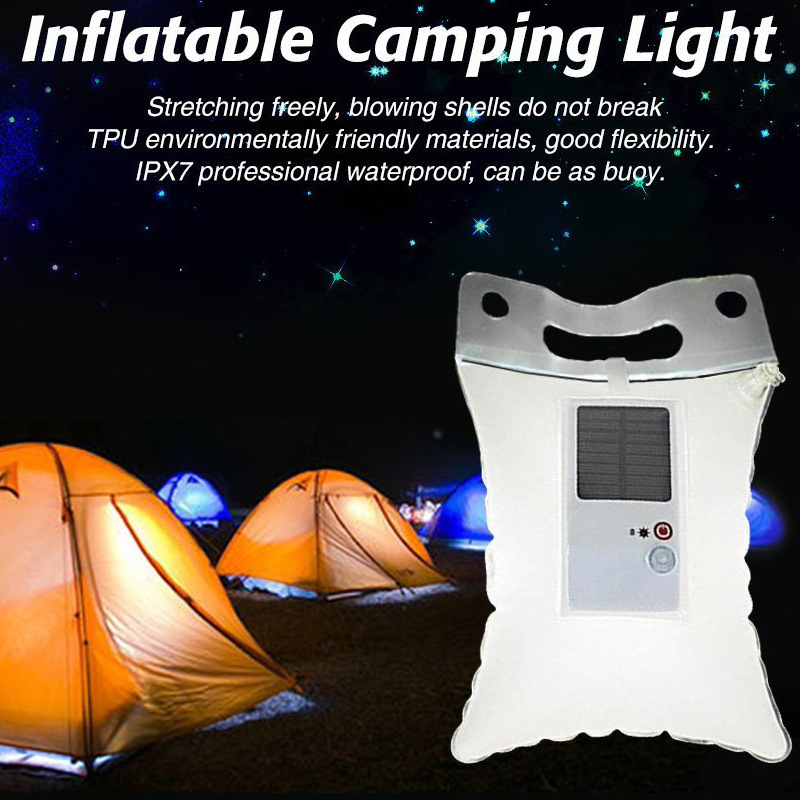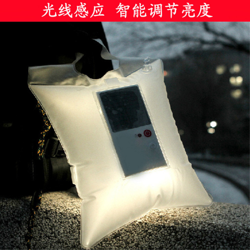 外贸专供wish新品太阳能户外野营灯LED轻薄便携充气灯可吹气