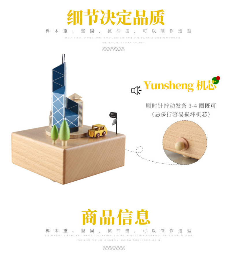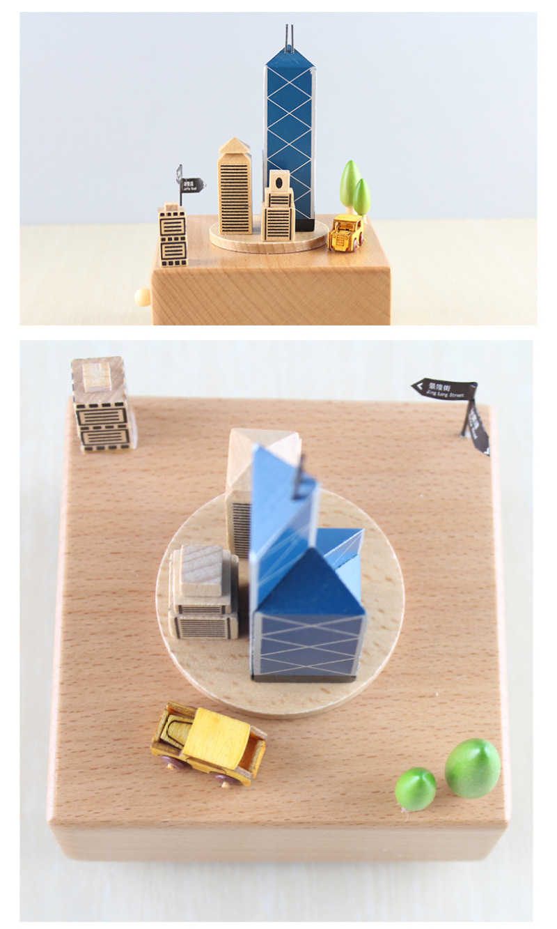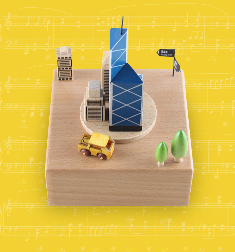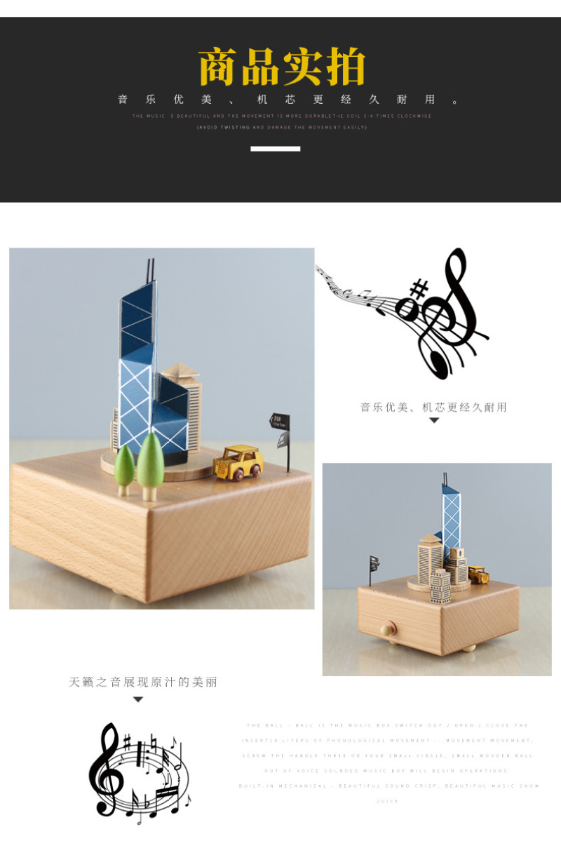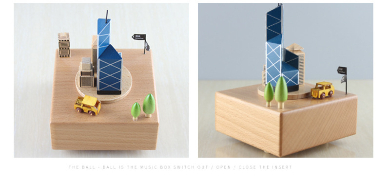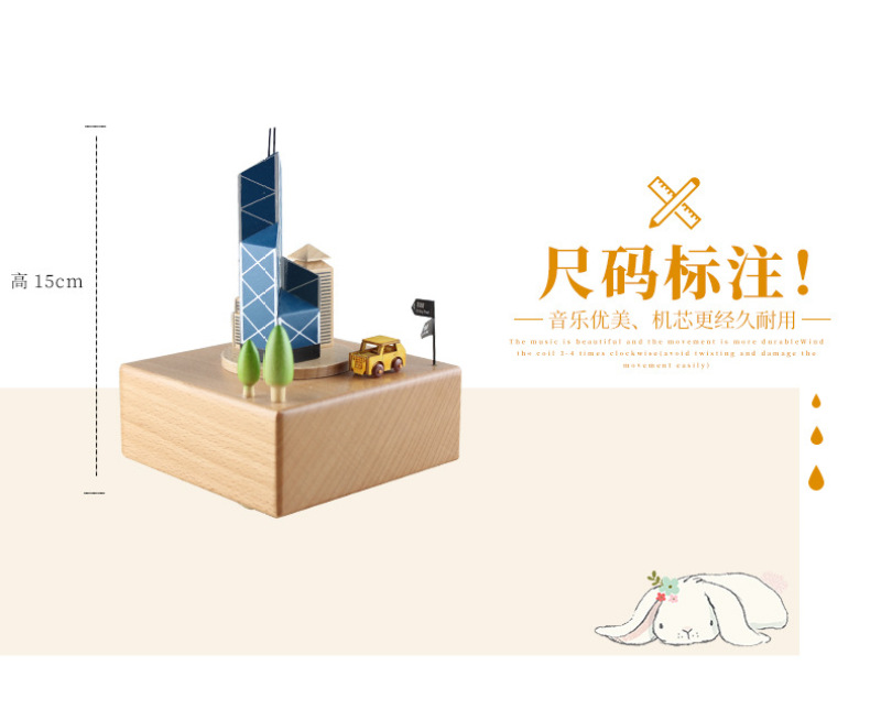 PH1533中银大厦精品木质音乐盒八音盒生日礼物创意儿童旋转摆件