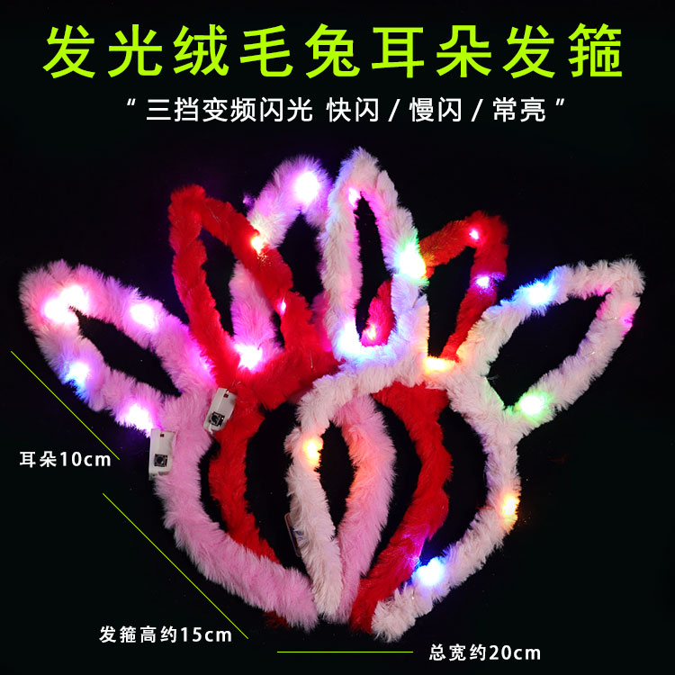 发光毛绒兔耳朵大号卖萌发箍演唱会闪光道具夜市地摊景发光头扣