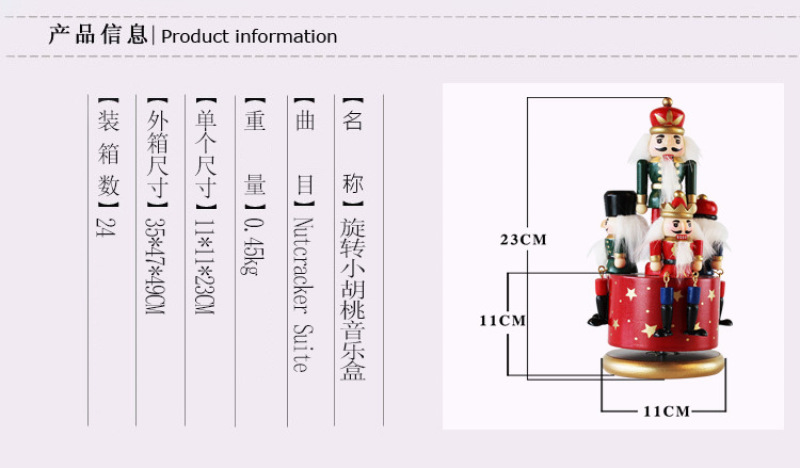 BJ23001胡桃人精品木质音乐盒八音盒生日礼物创意儿童旋转摆件