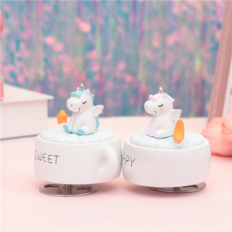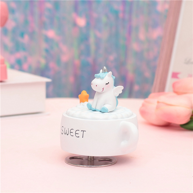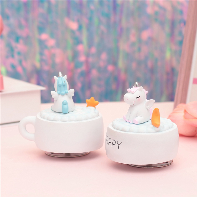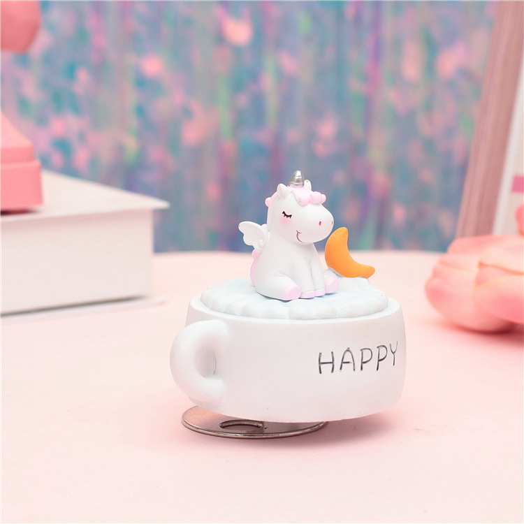 外贸专供创意zakka少女心独角兽梦幻月亮音乐铃旋转八音盒音乐盒