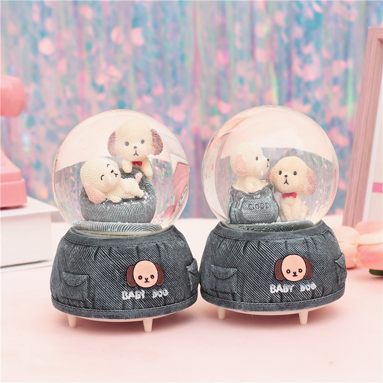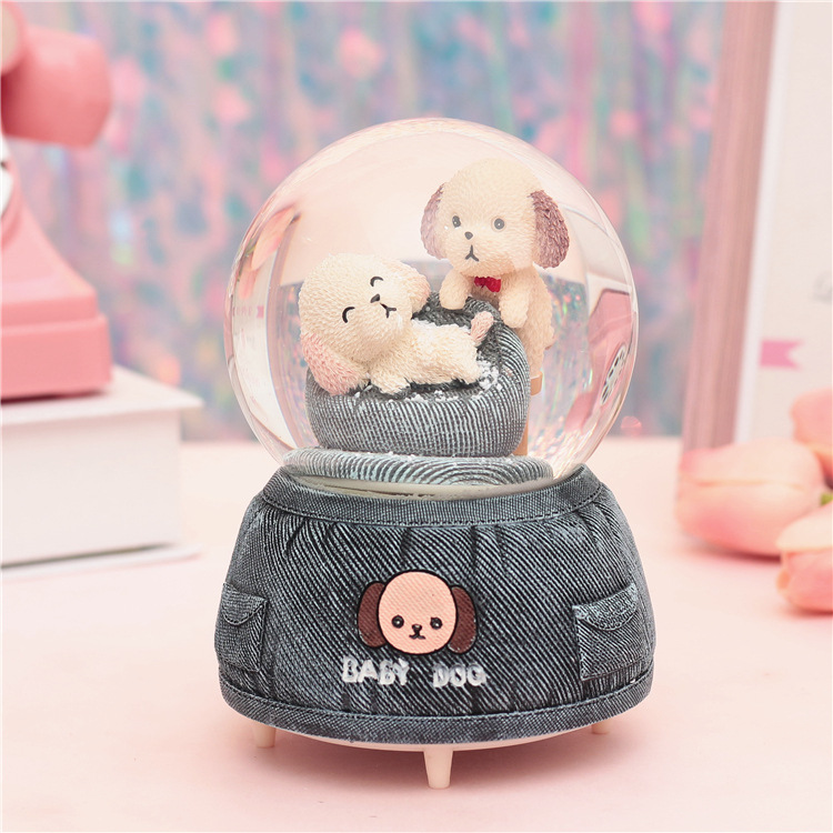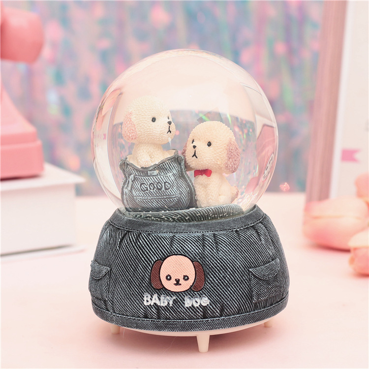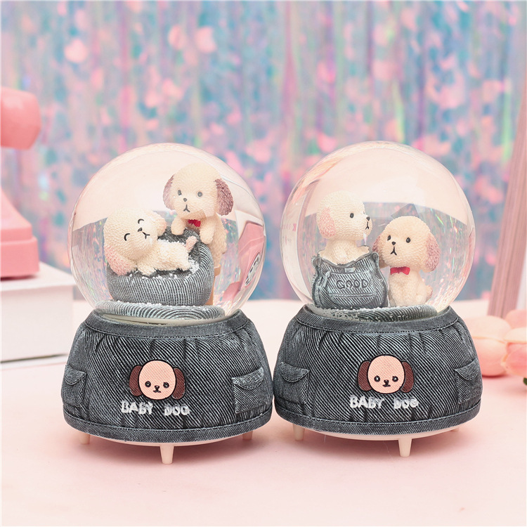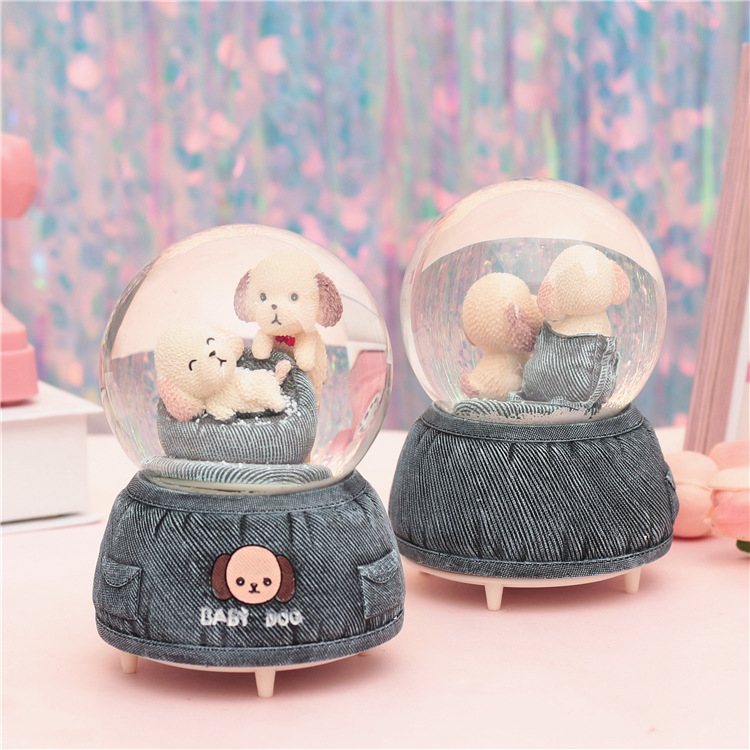 外贸专供创意水晶球可爱小狗带灯水球彩灯八音盒音乐盒学生儿童