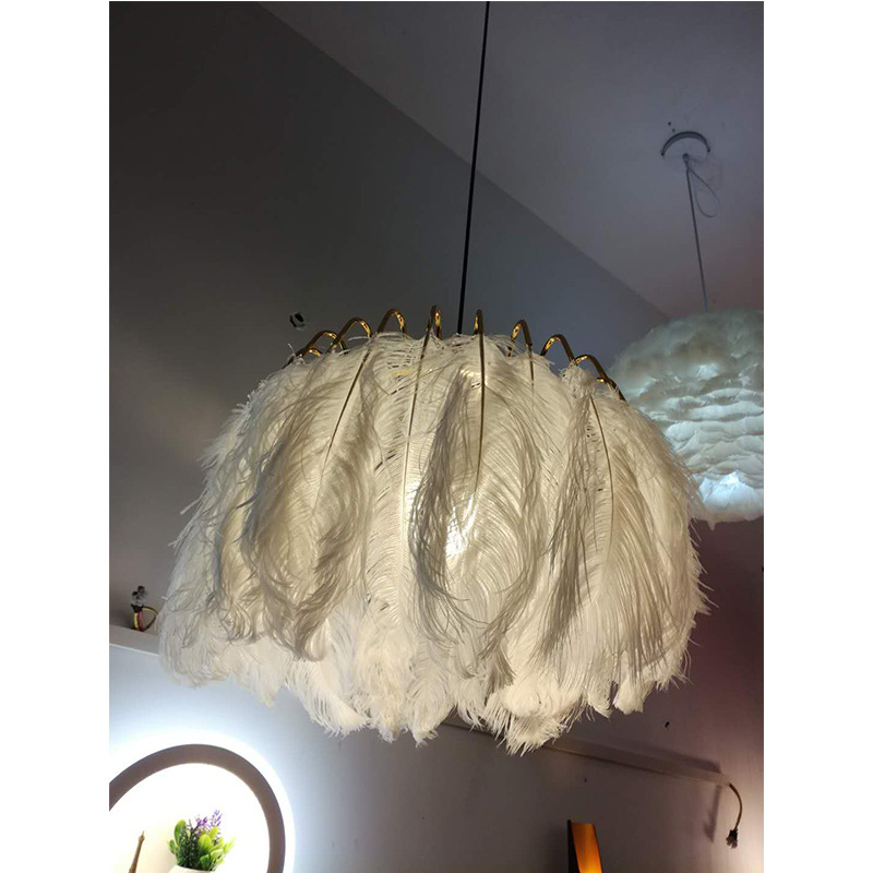 外贸专供新款艺术羽毛鸵鸟毛云朵纱布吊灯