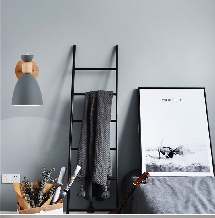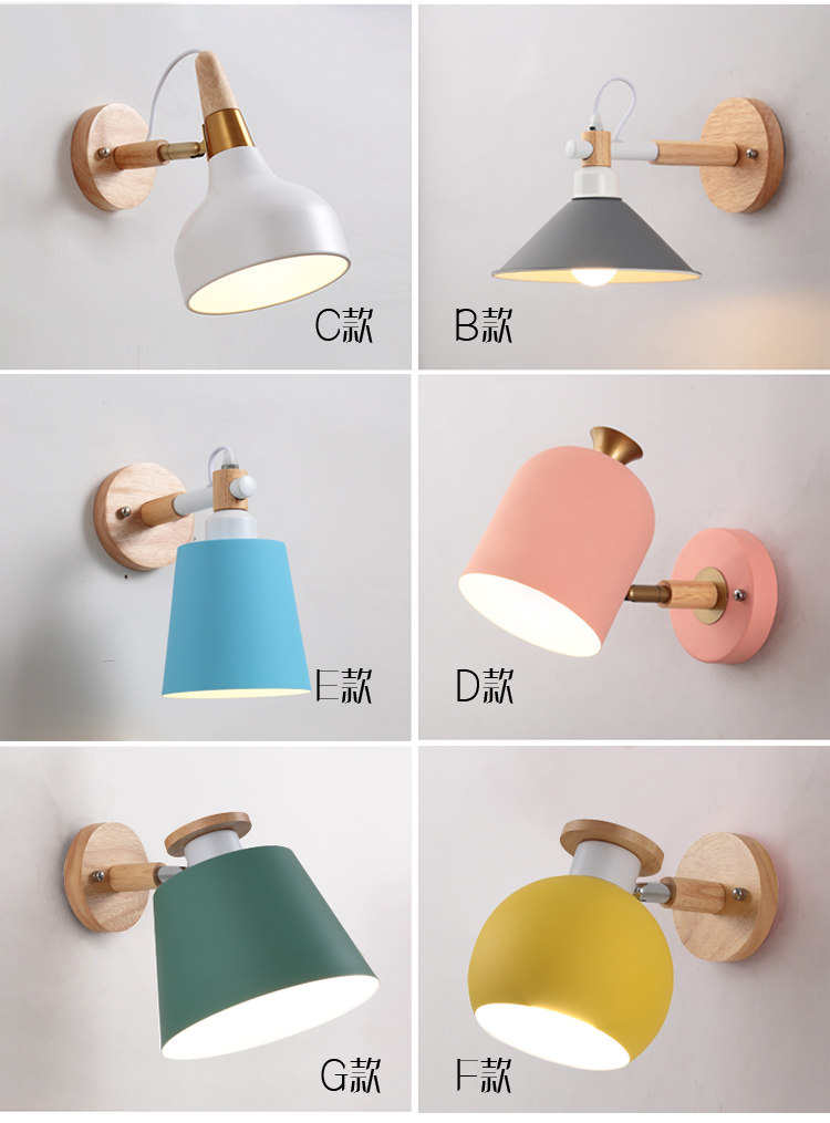 外贸专供壁灯北欧原木彩色壁灯简约床头壁灯马卡龙客厅过道灯