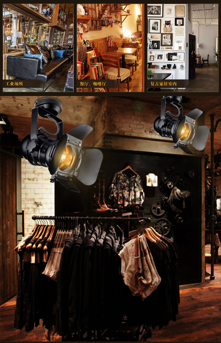 外贸专供美式COB聚光灯LED工业风服装店展厅射灯轨道灯吸顶灯具