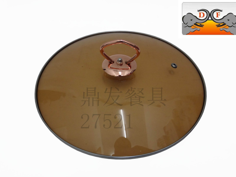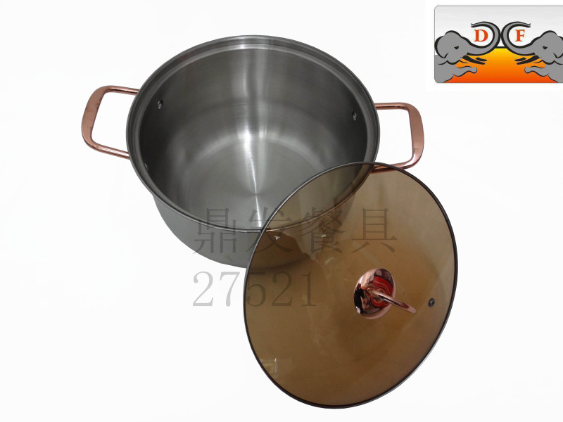 DF27424鼎发餐具 厨房酒店用品 茶色玻璃盖复底不锈钢弧形锅 汤锅