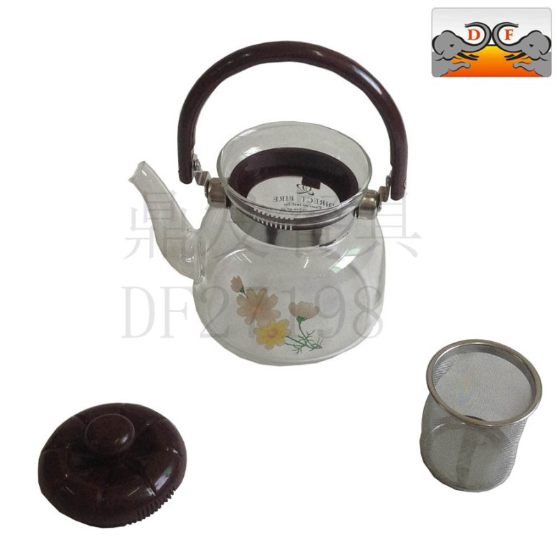 DF27198鼎发不锈钢厨房酒店用品 手提贴花玻璃茶壶 烧水壶 直火壶