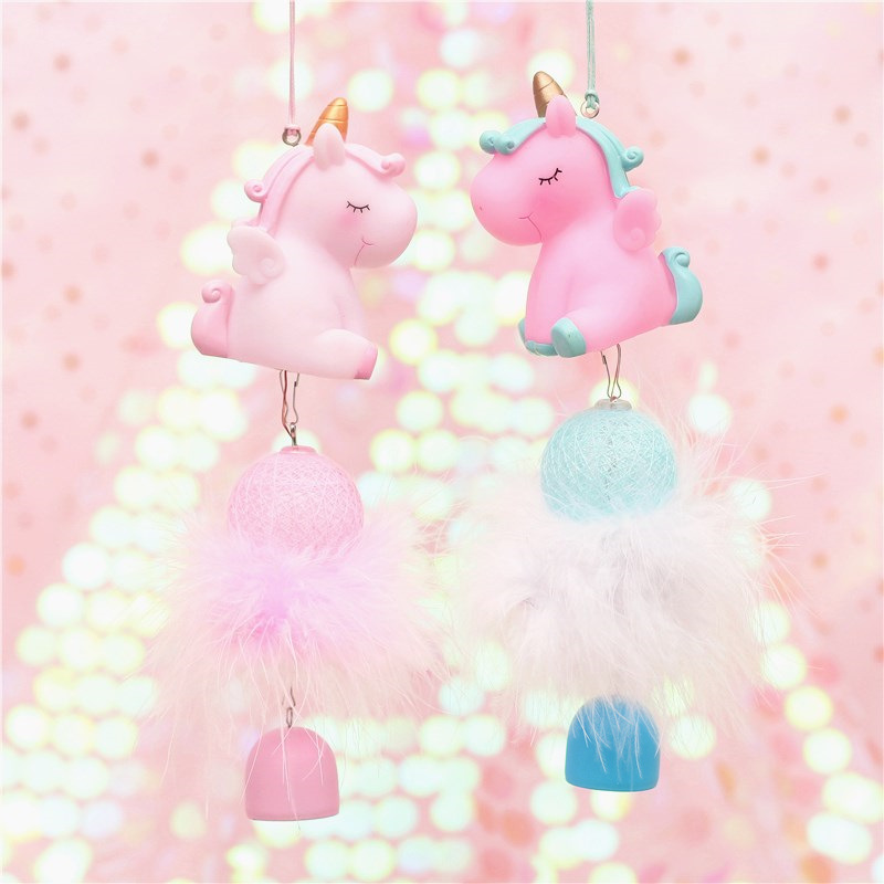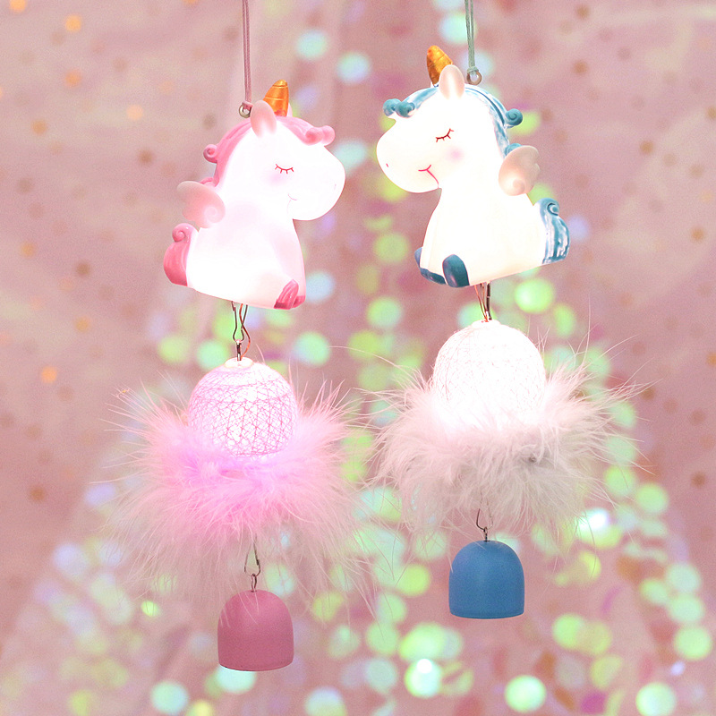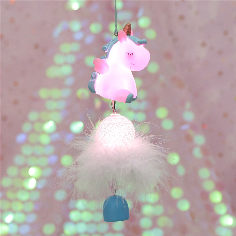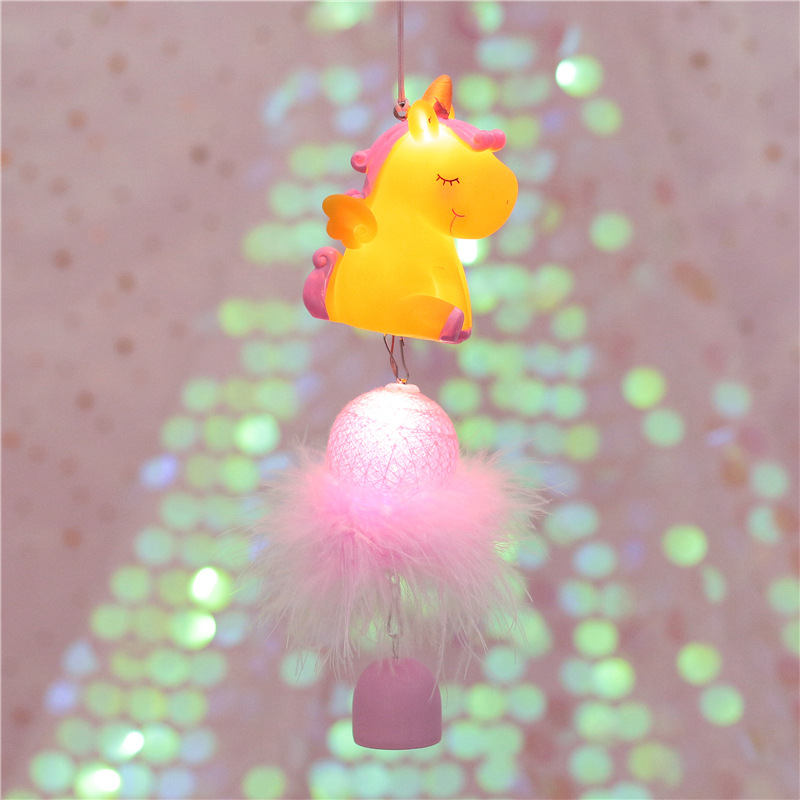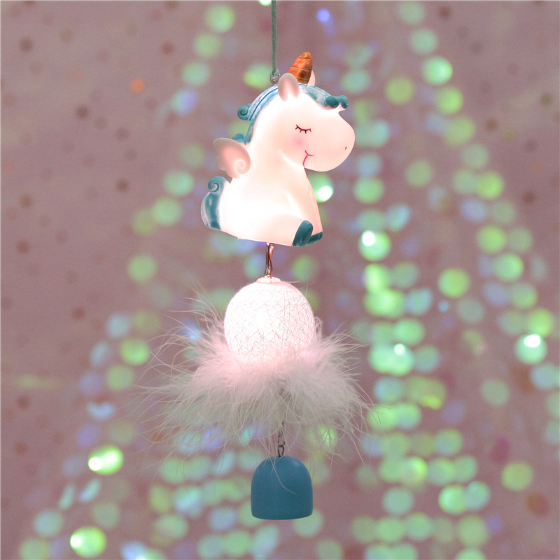 外贸专供ins风带灯挂件独角兽藤球灯风铃汽车内工艺品