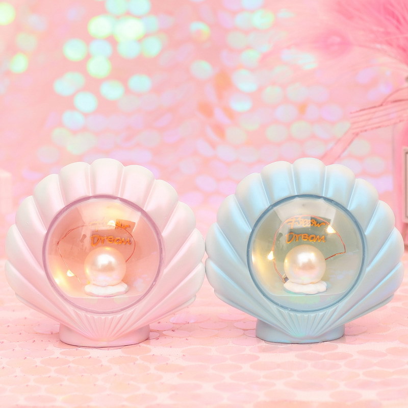 外贸专供珠光贝壳珍珠少女心星星灯小夜灯房间装饰工艺品