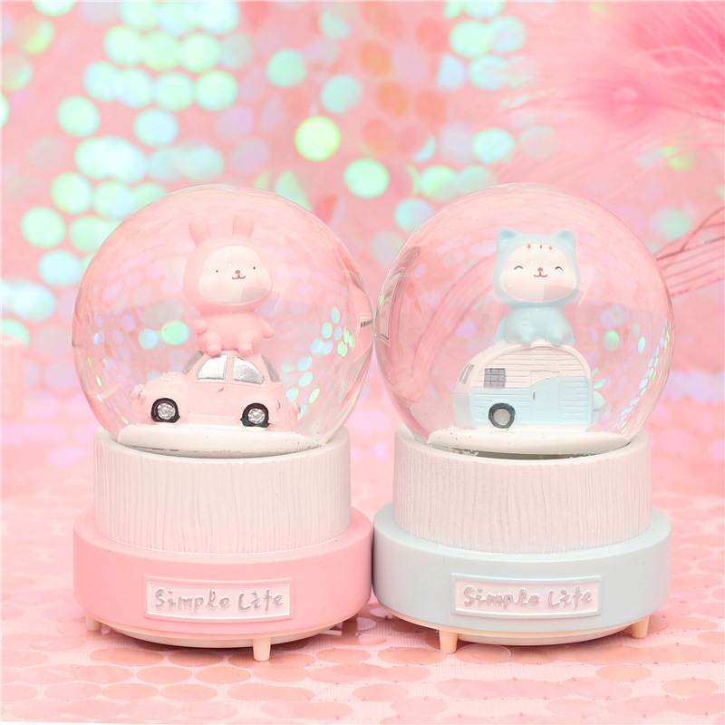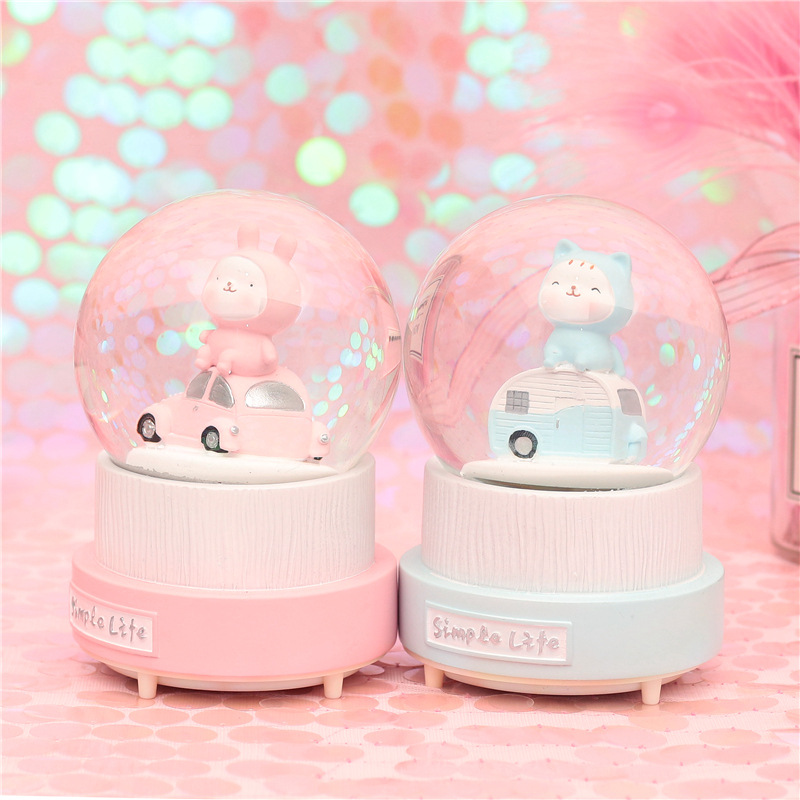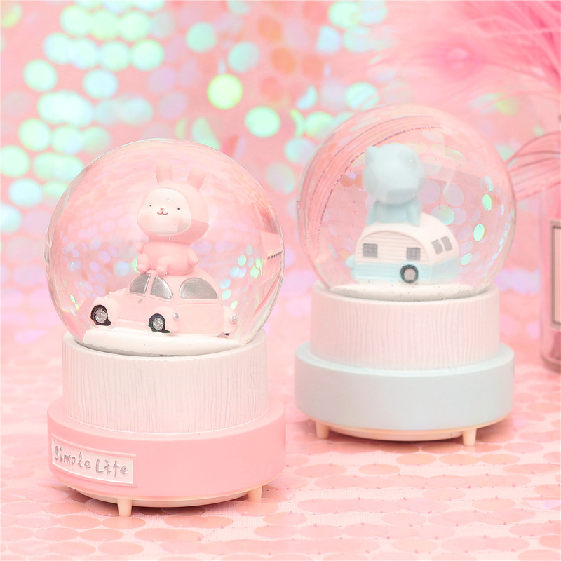 外贸专供汽车卡通小兔子水晶球发光礼物送儿童礼品客厅卡通小夜灯