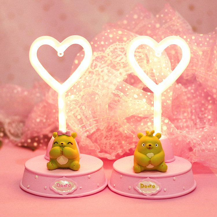 外贸专供杂货小仙熊爱心灯 霓虹灯情侣少女心小夜灯树脂工艺品