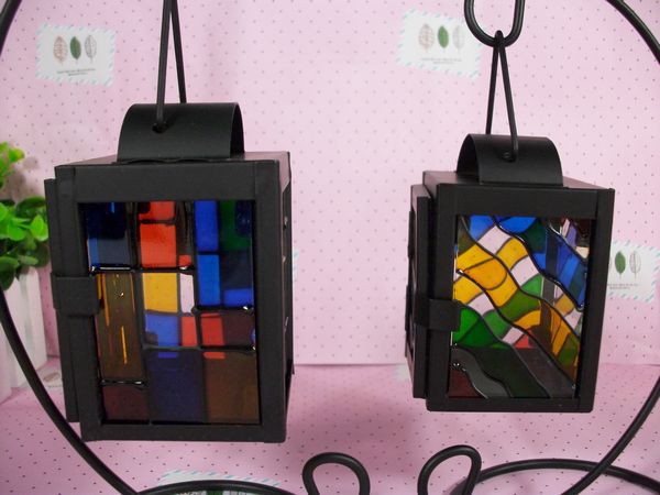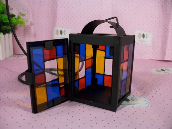 外贸专供彩色玻璃复古铁艺烛台 创意欧式家饰风灯 婚庆道具摆件