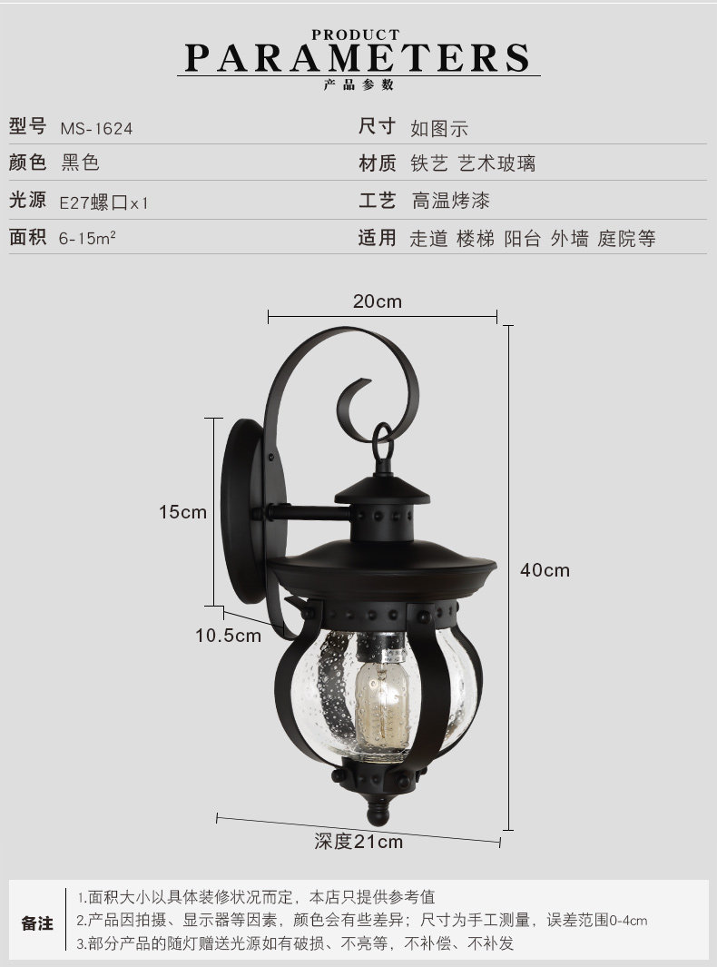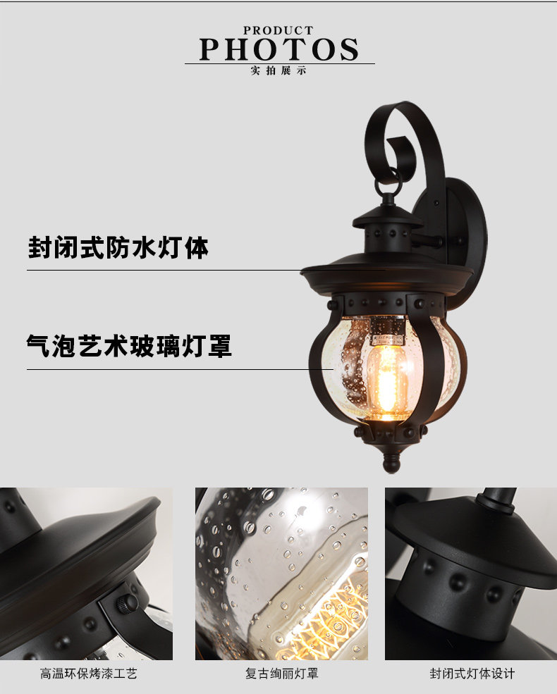外贸专供美式户外壁灯防水铁艺阳光房室外阳台过道外墙庭院露台灯