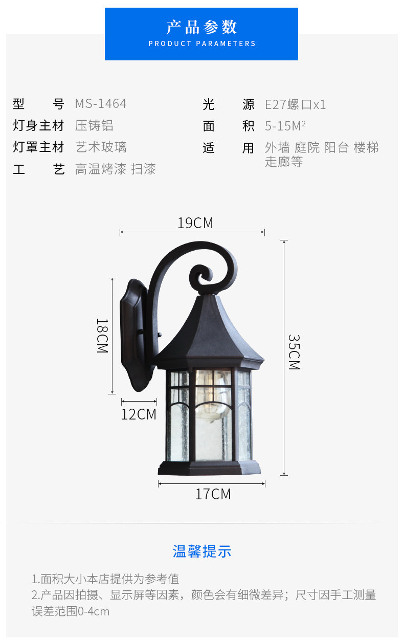 外贸专供复古室外壁灯欧式防水户外灯具过道庭院灯外墙露台灯