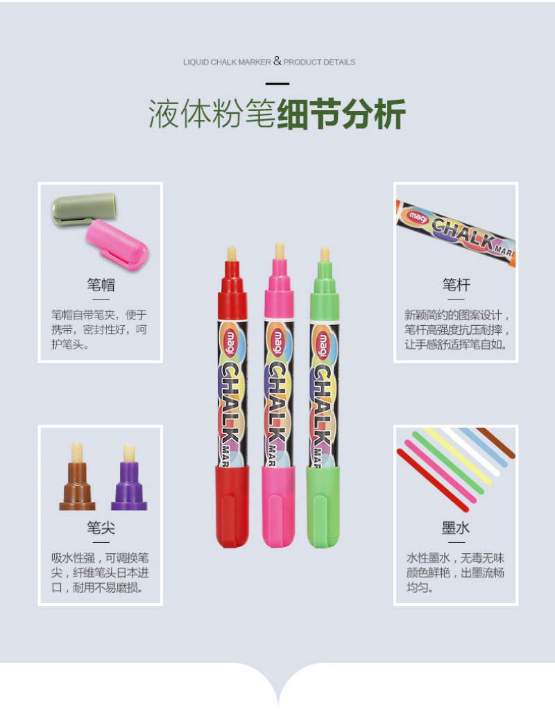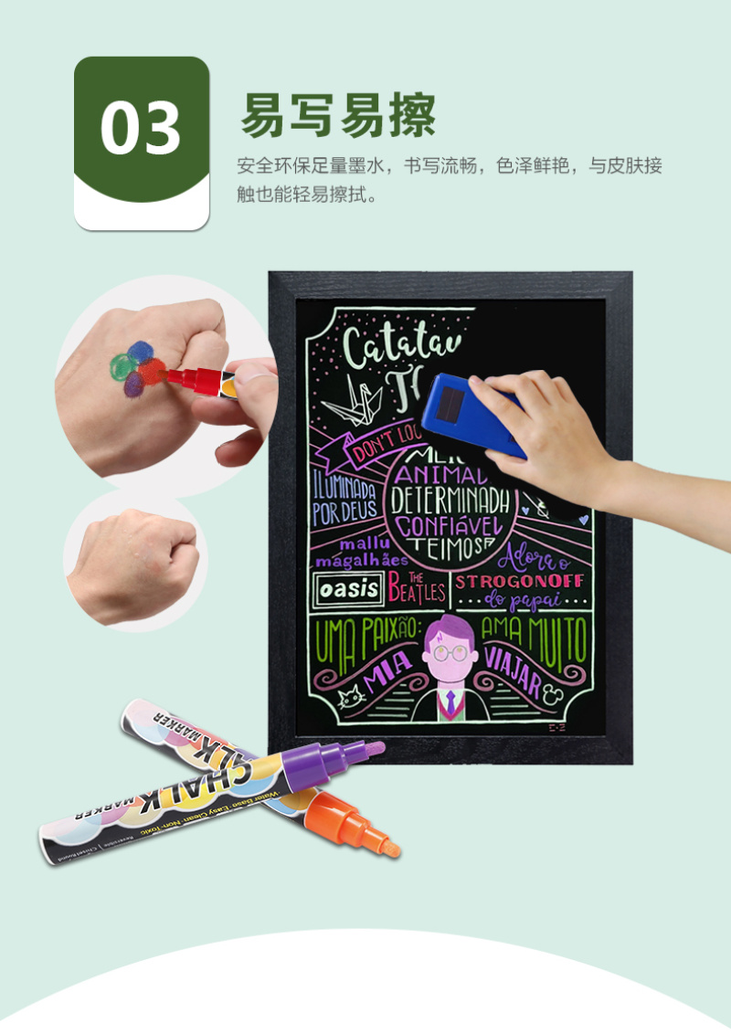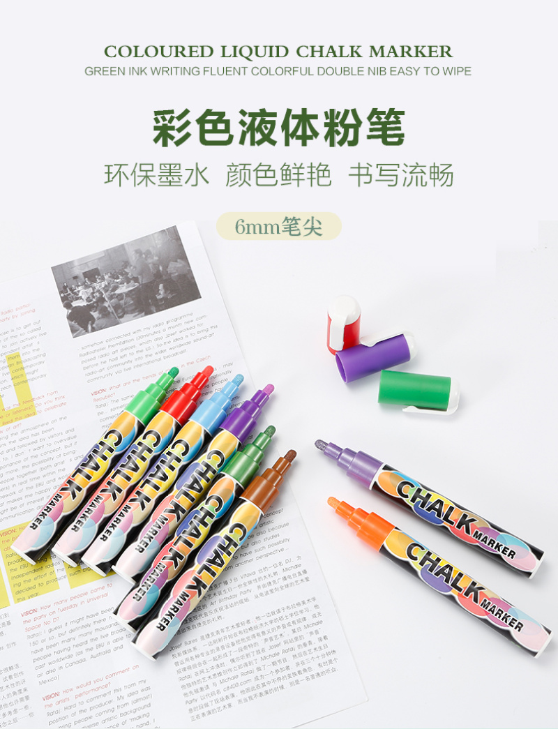 12色荧光画板无尘粉笔 可擦液体粉笔荧光灯板笔