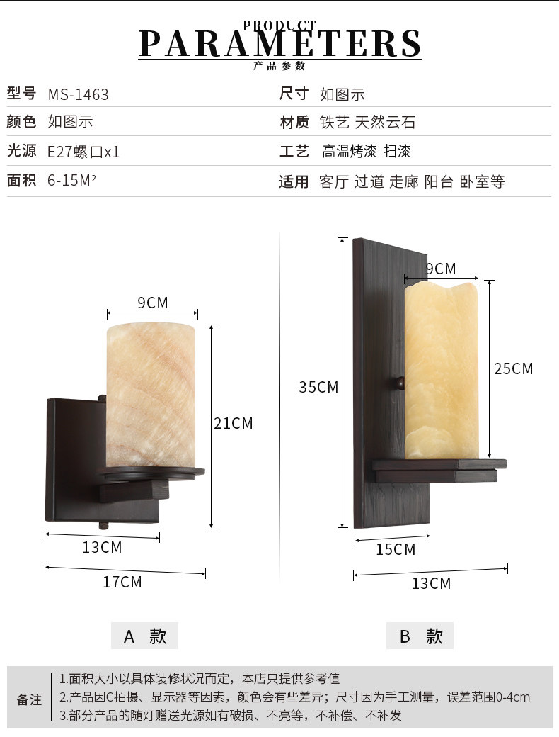 外贸专供云石壁灯美式乡村墙灯创意床头灯复古阳台灯走廊小壁灯