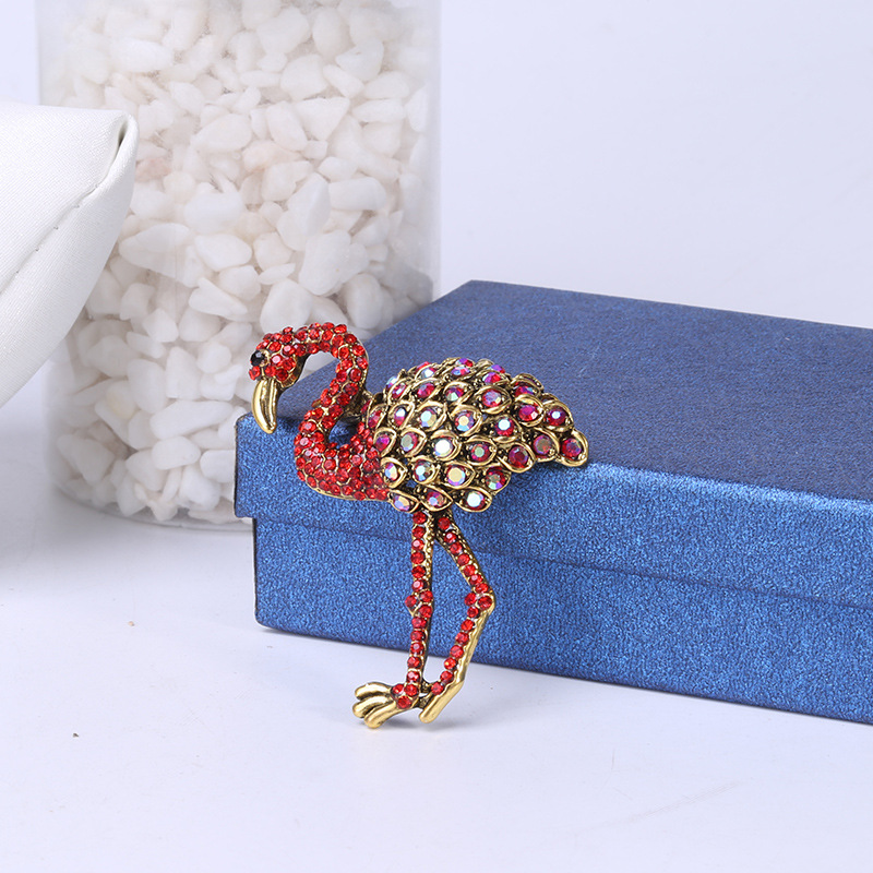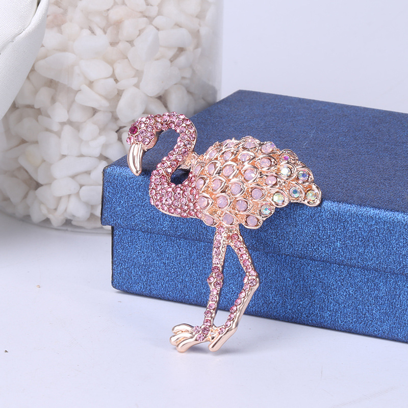 欧美热销火烈鸟满钻胸针 合金镶钻动物胸花 服装配饰时尚别针女