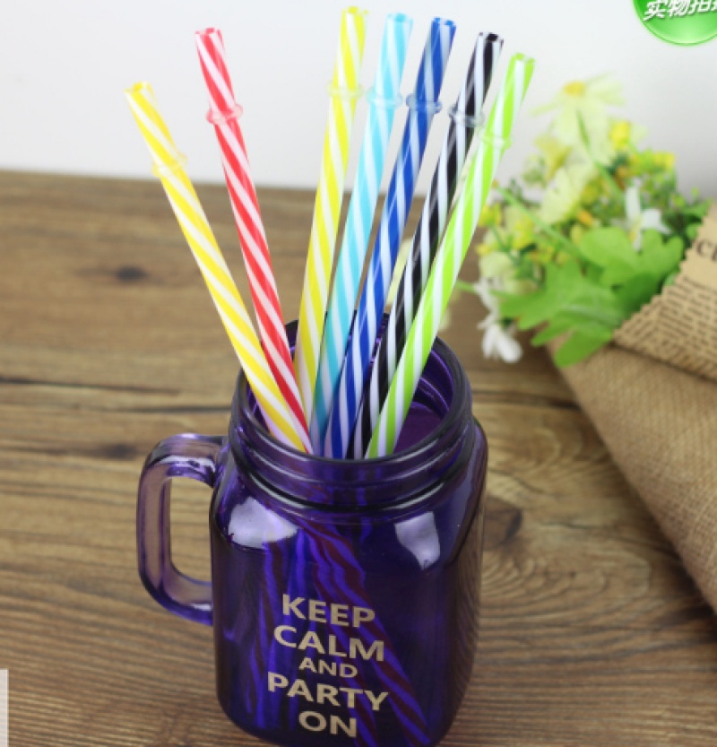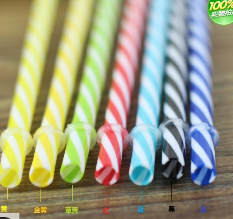 多色单只塑封包装pvc塑料吸管 彩条纹吸管加长吸管加厚塑料吸管