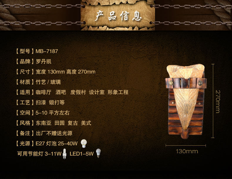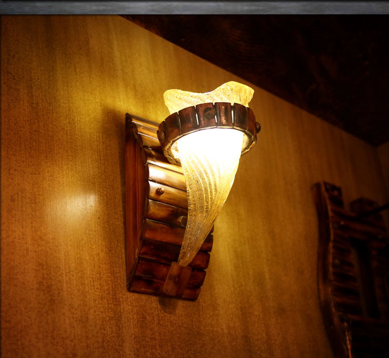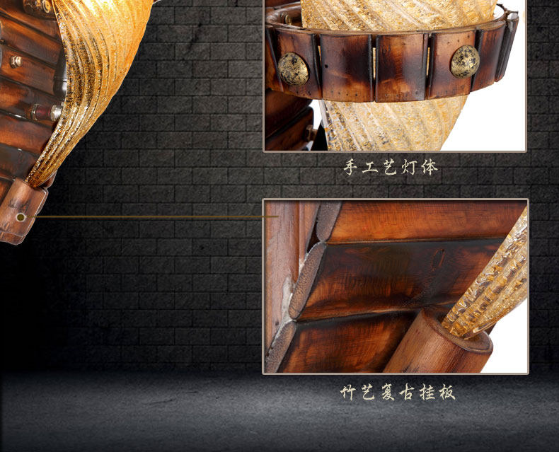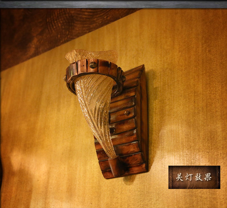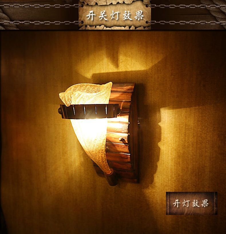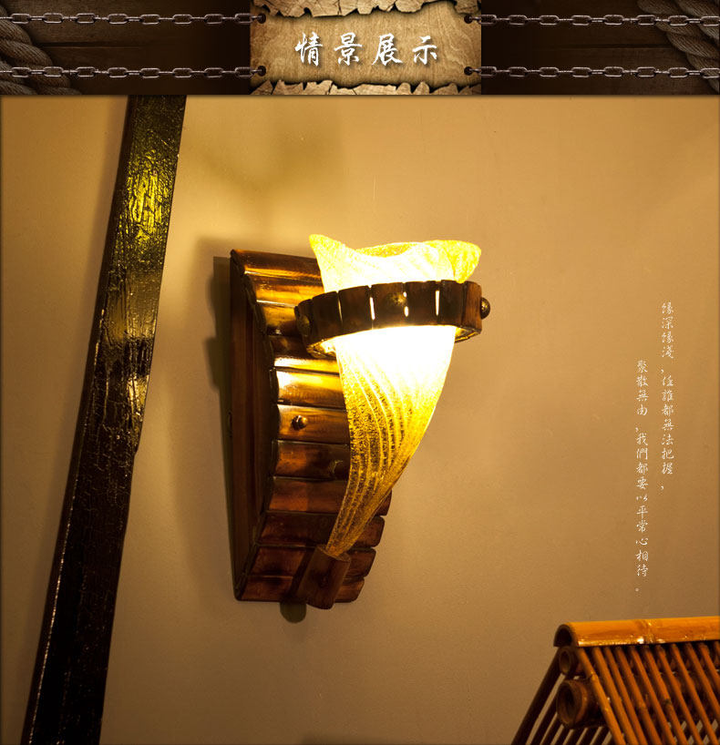 外贸专供美式乡村壁灯床头灯过道咖啡厅竹灯竹编灯创意仿古壁灯