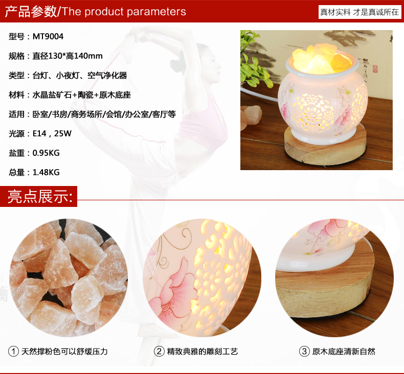 外贸专供外贸专供水晶盐灯温馨台灯陶瓷台灯床头灯喜马拉雅海盐灯